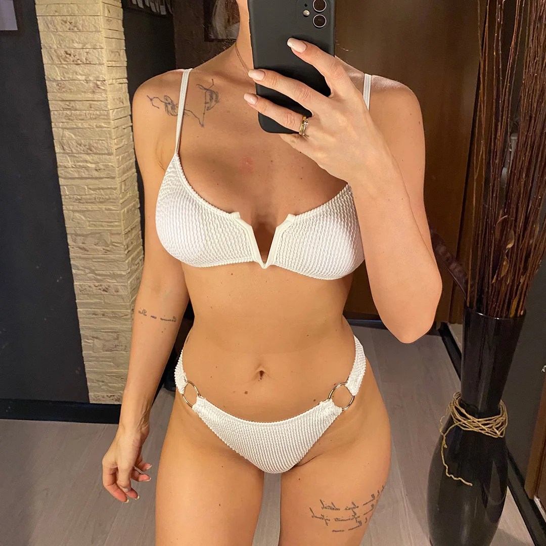 Sexy V Shaped Wrinkled Crinkled Bikini Female Swimsuit Women Swimwear Two-pieces Bikini set Bather Bathing Suit Swim Lady V3621