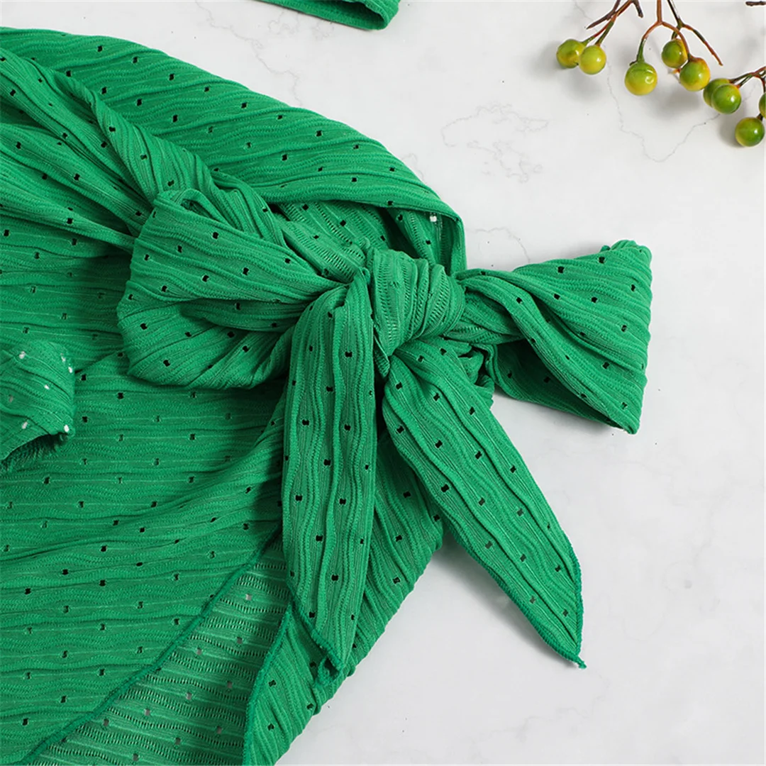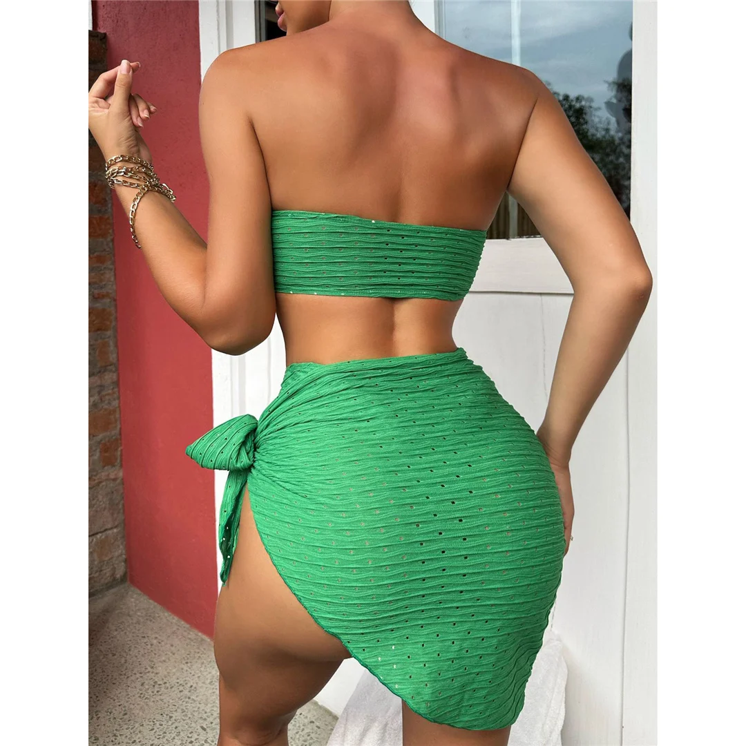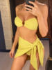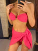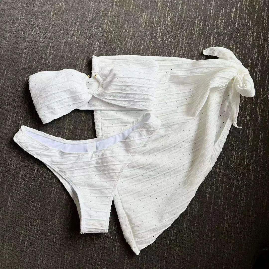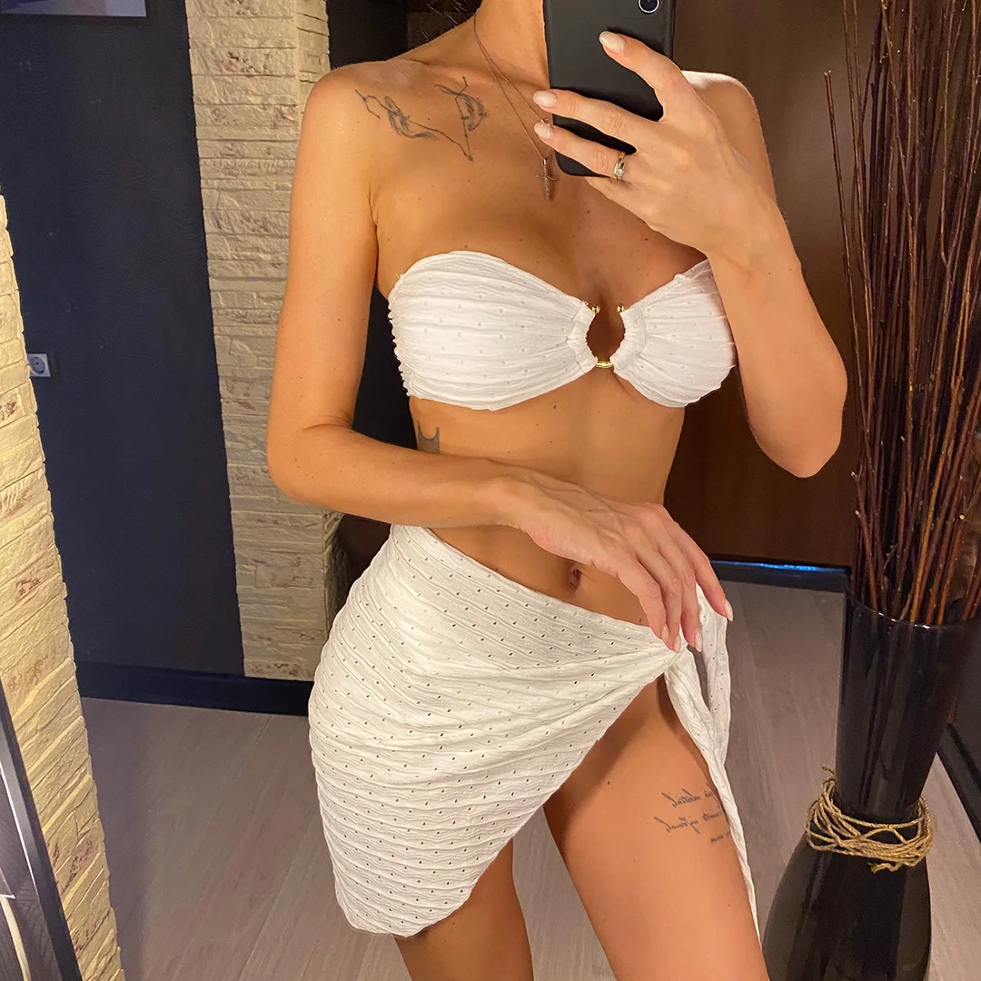 Sexy With Sarong Bandeau Mid Waist Bikini Female Swimsuit Women Swimwear Three-pieces Bikini set Bather Bathing Suit Swim V4242
