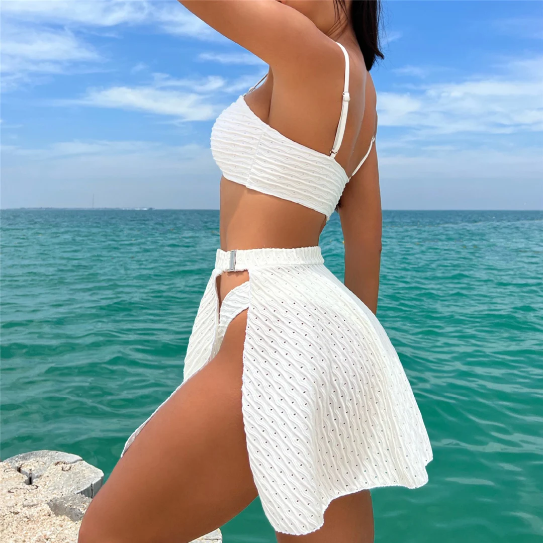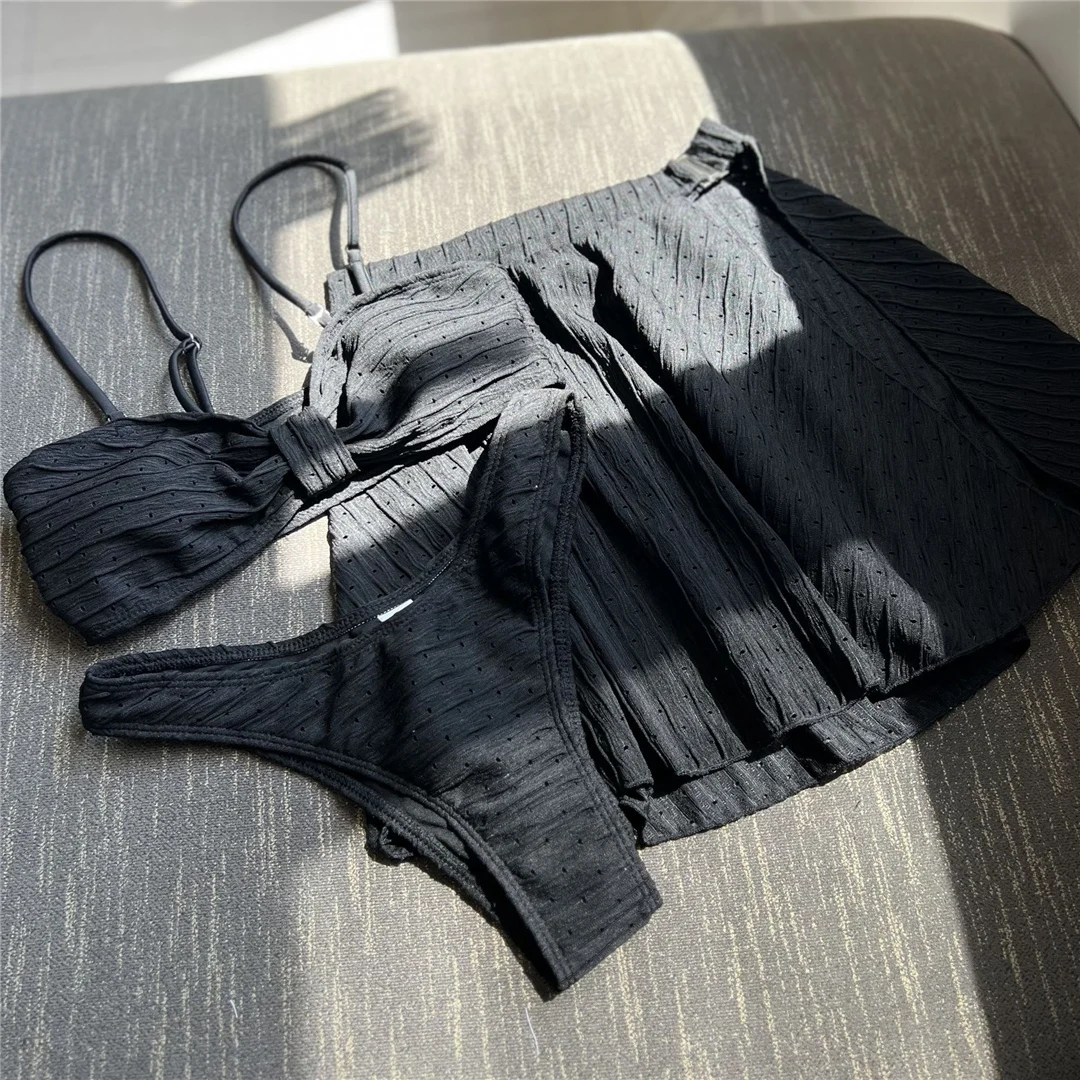 Sexy With Skirt Wrinkled Brazilian Bikini Women Swimwear Female Swimsuit Three-pieces Bikini set Bather Bathing Suit Swim V4710