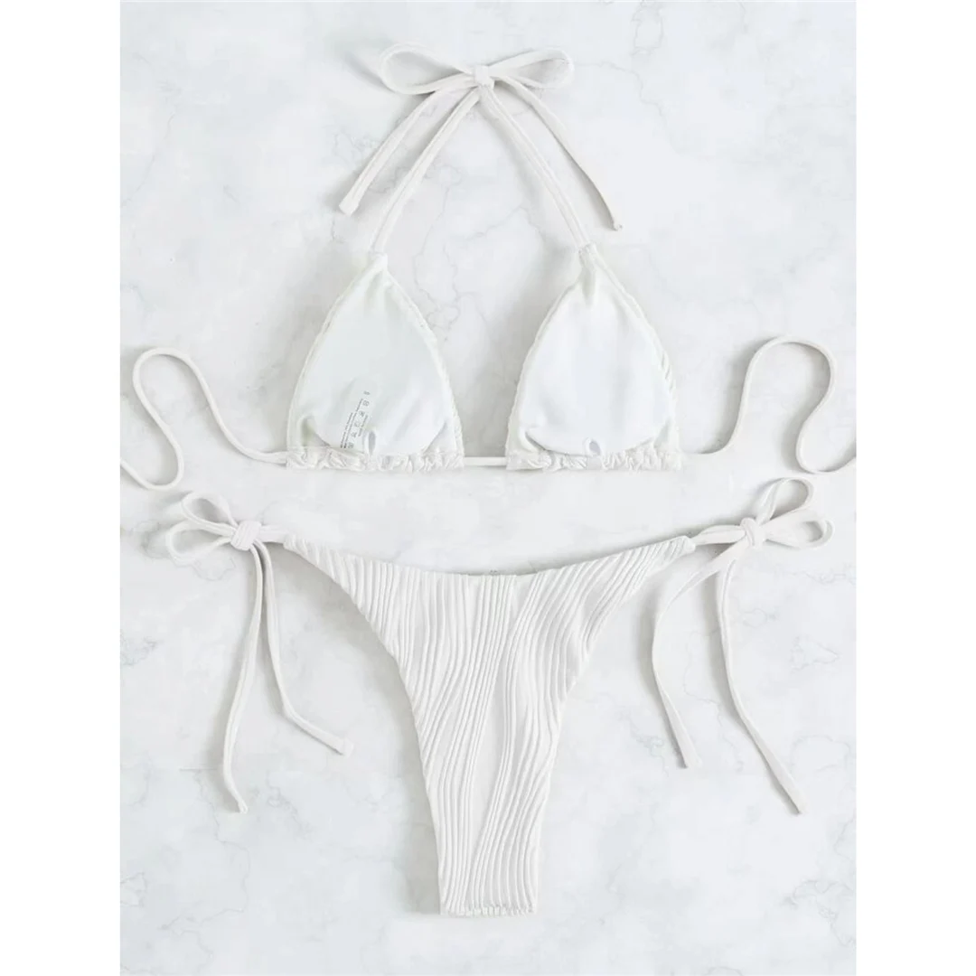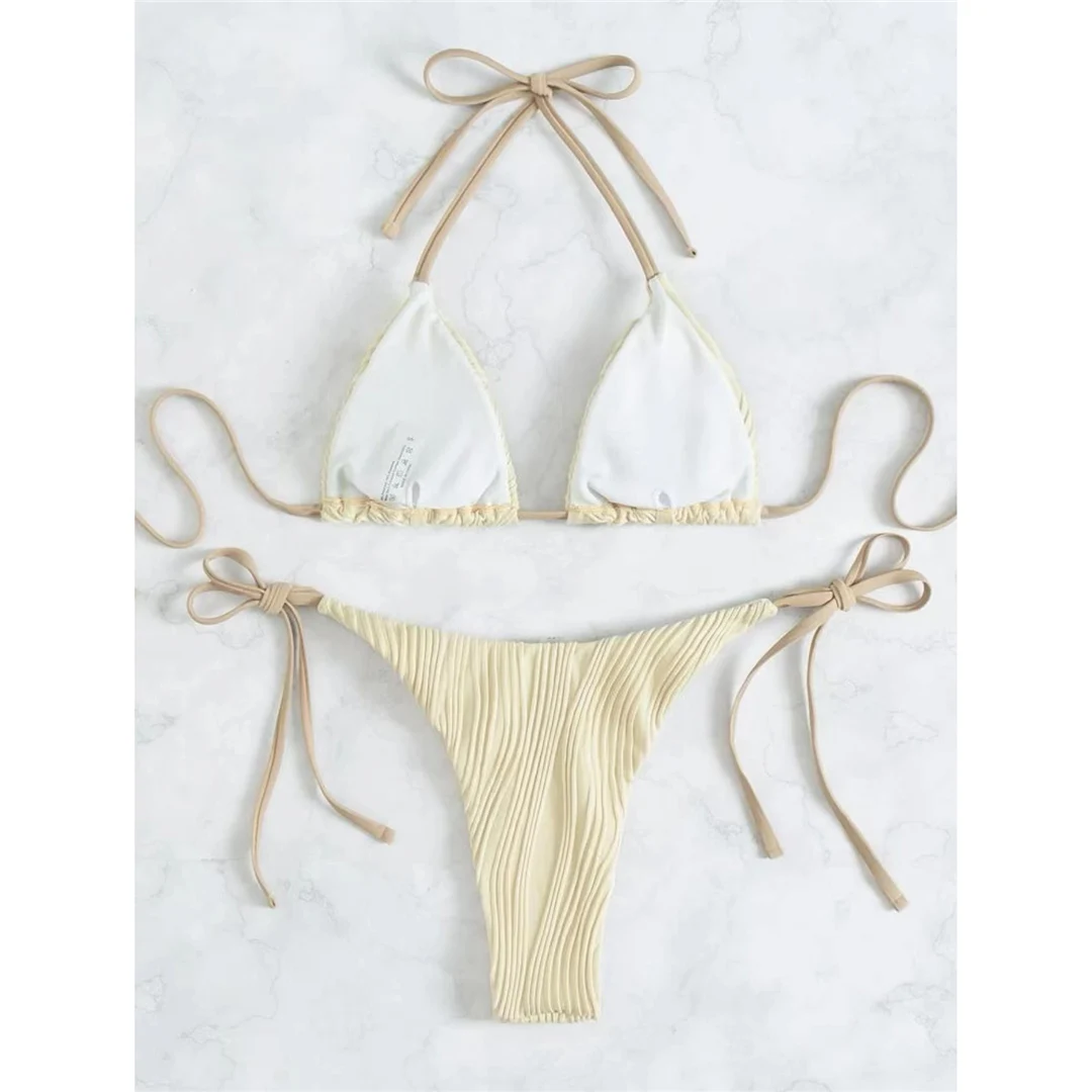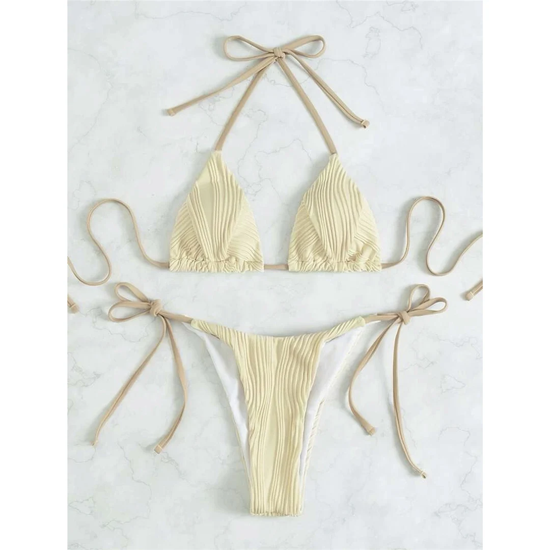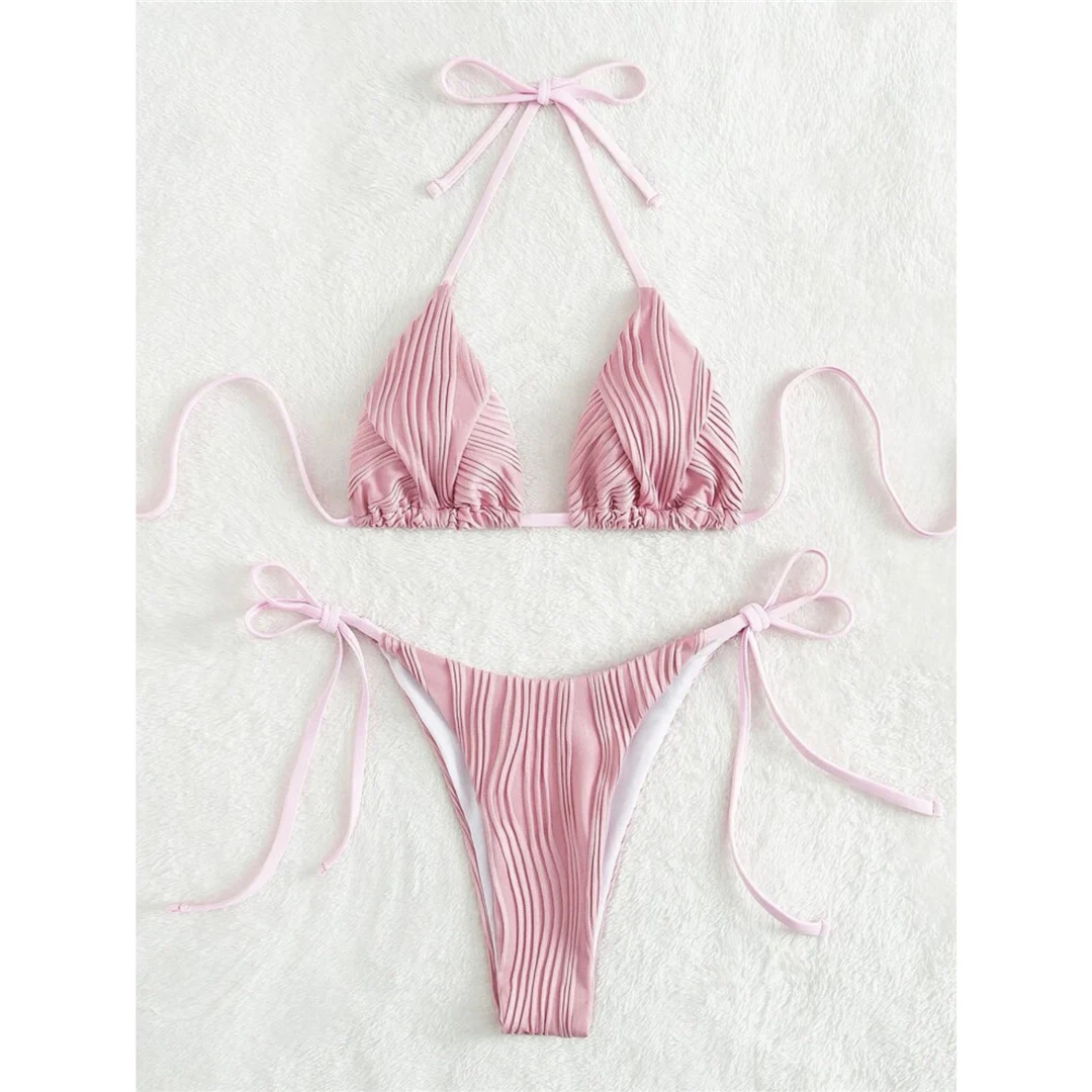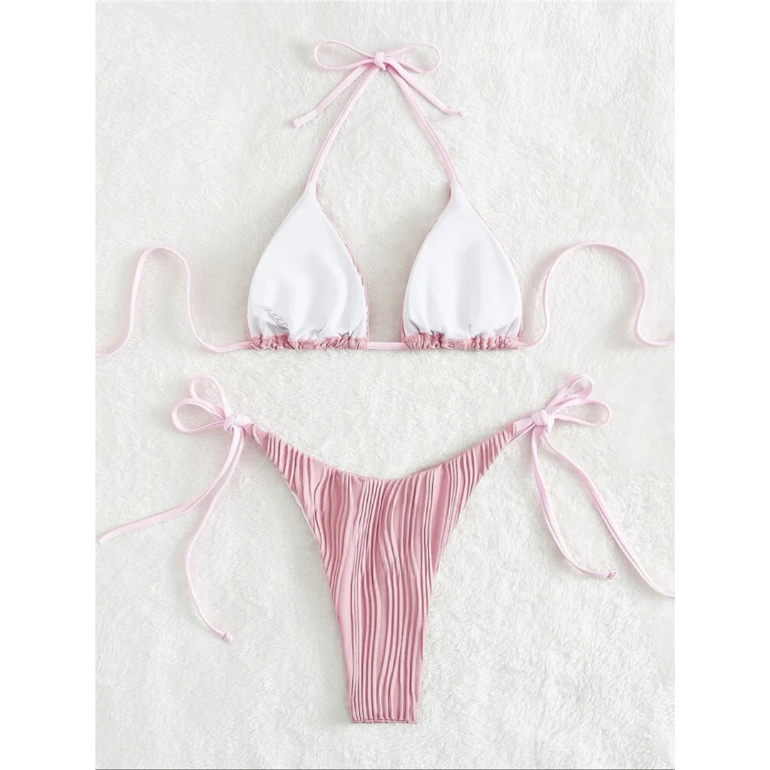Sexy Wrinkled Halter Brazilian Bikini Female Swimsuit Women Swimwear Two-pieces Bikini set Bather Bathing Suit Swim Lady V4101