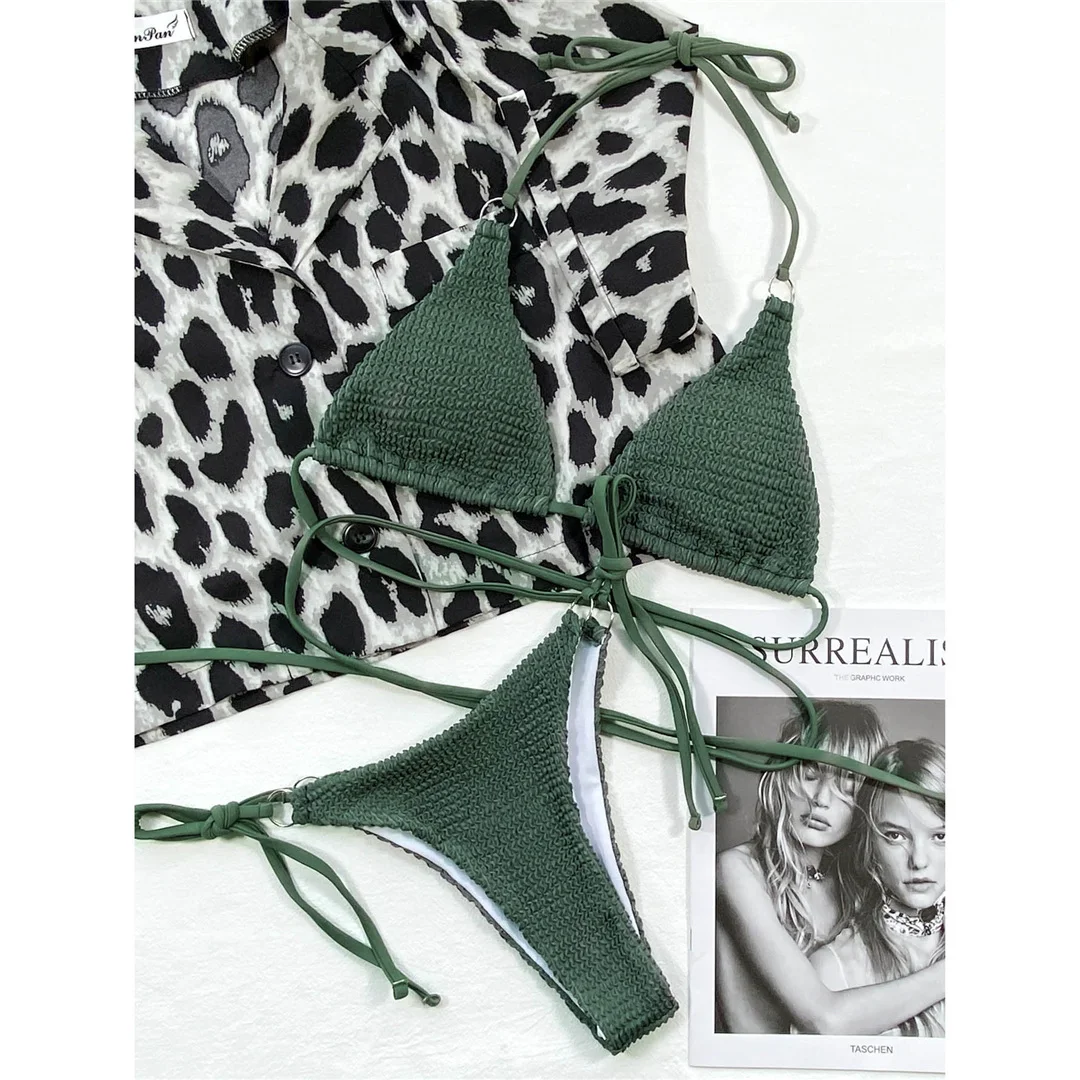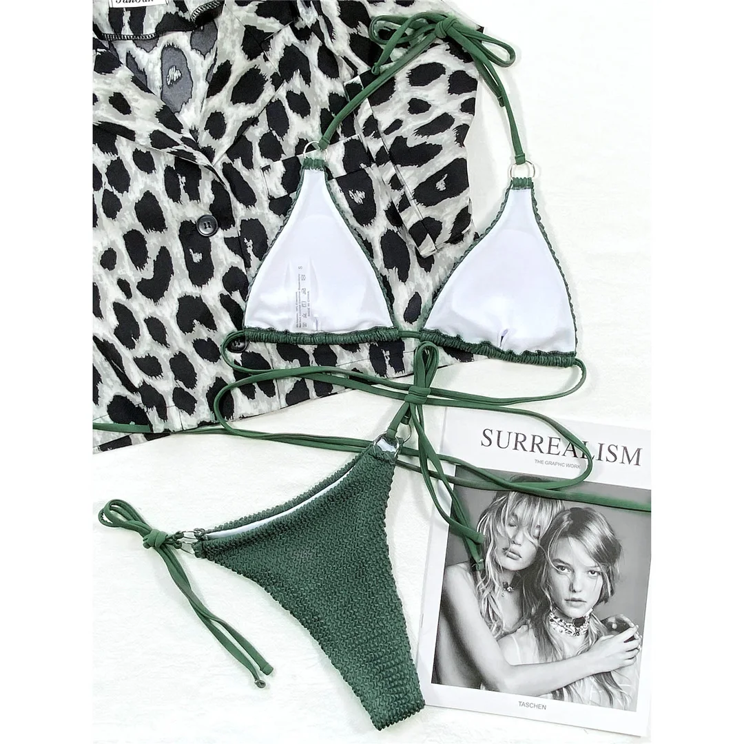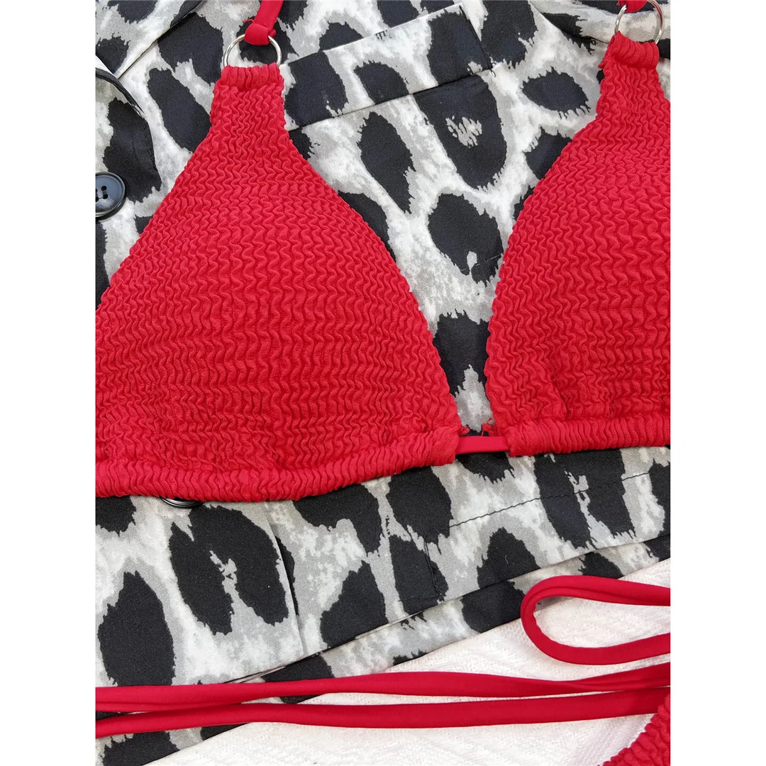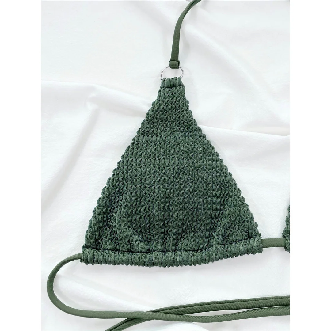 Sexy Wrinkled Halter DIY Wrap Around Bikini Female Swimsuit Women Swimwear Two-pieces Bikini set Bather Bathing Suit Swim V3076