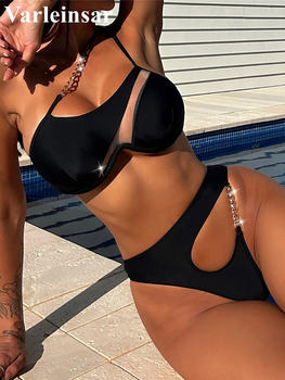 Shiny Halter High Leg Cut Brazilian Bikini Female Swimsuit Women Swimwear Two-pieces Bikini set Bather Bathing Suit Swim V5220