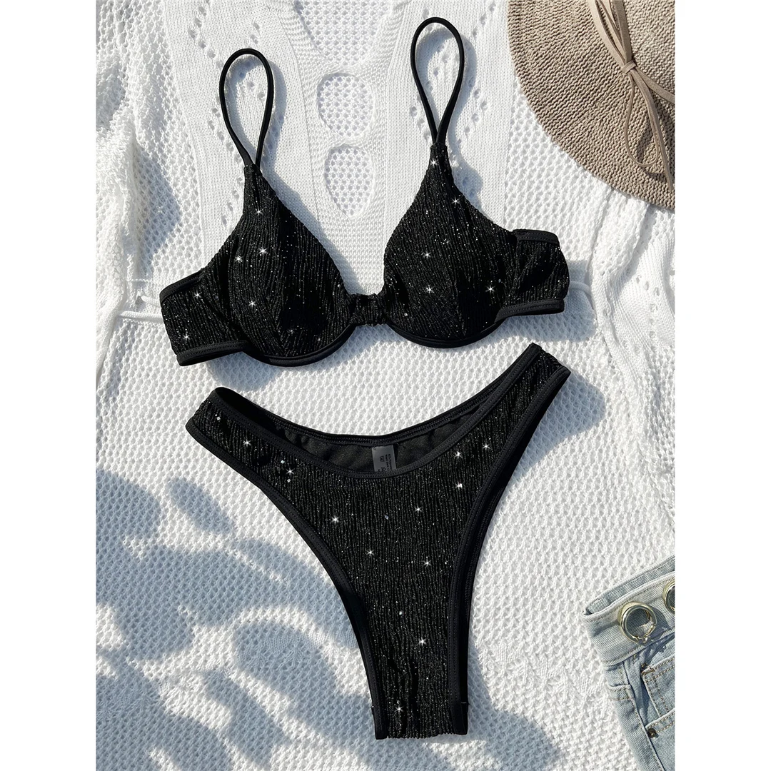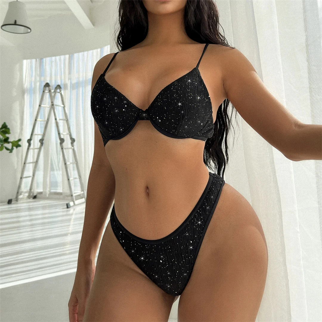 Shiny Sparkling Underwired Brazilian Bikini Women Swimwear Female Swimsuit Two-pieces Bikini set Bather Bathing Suit Swim V4479