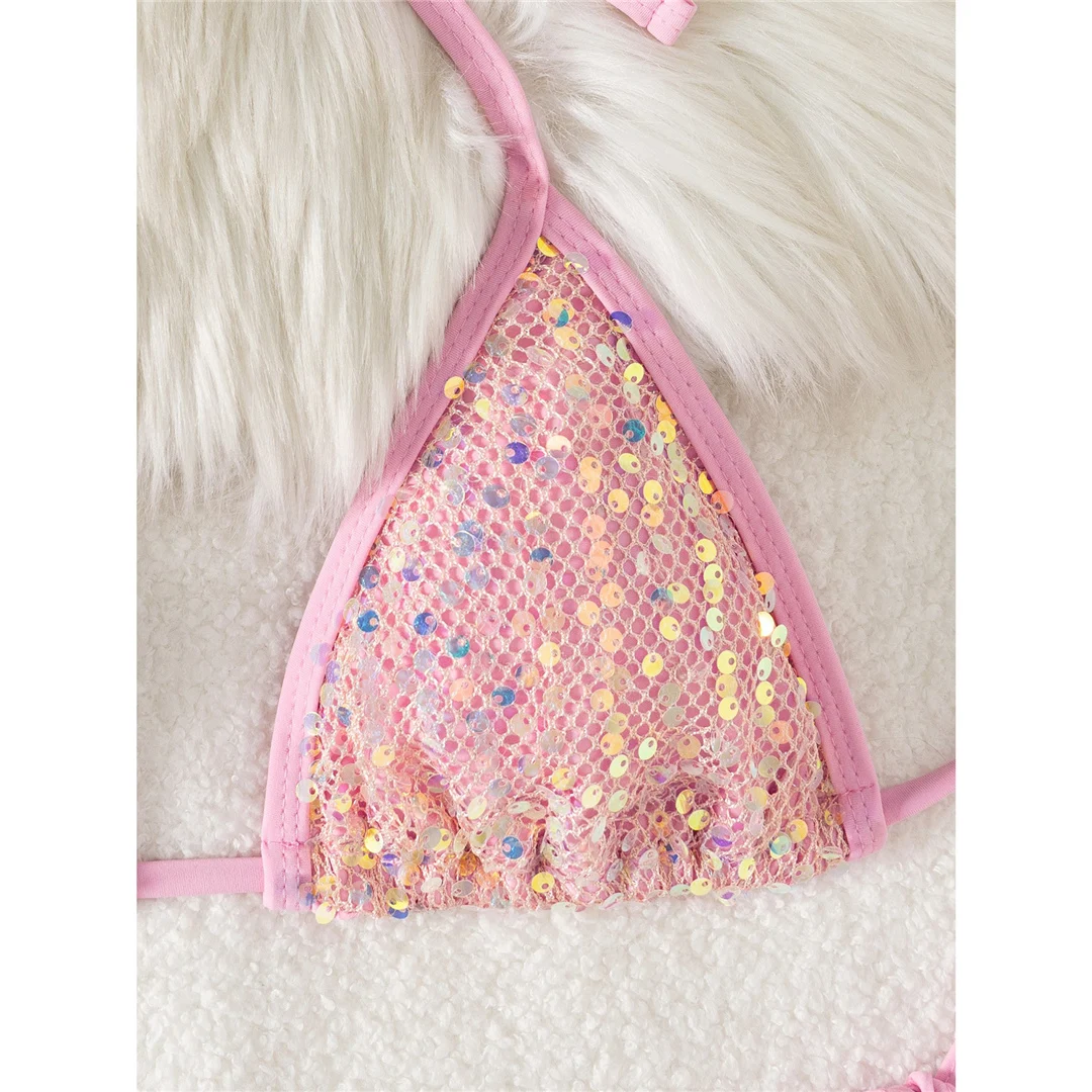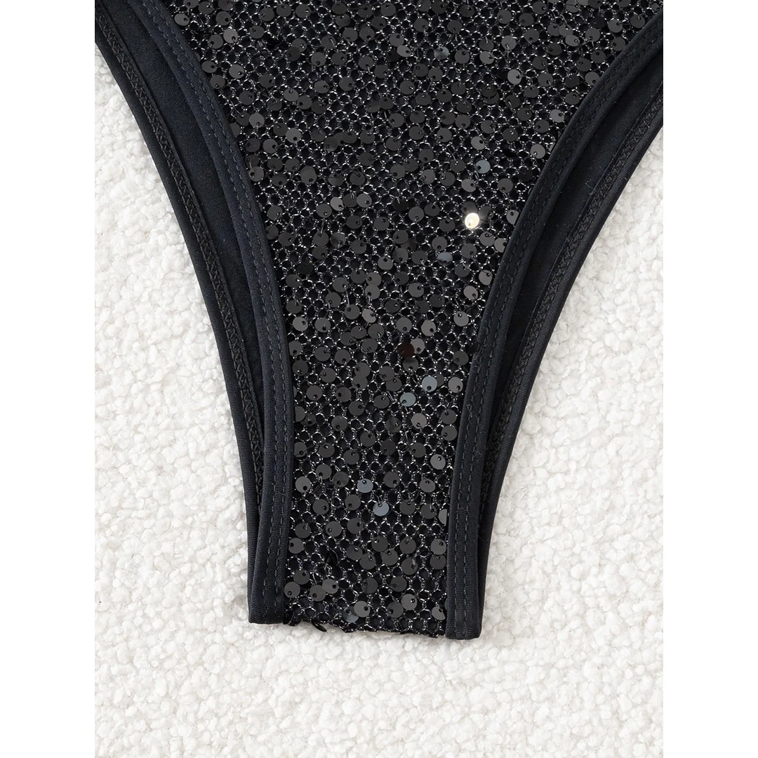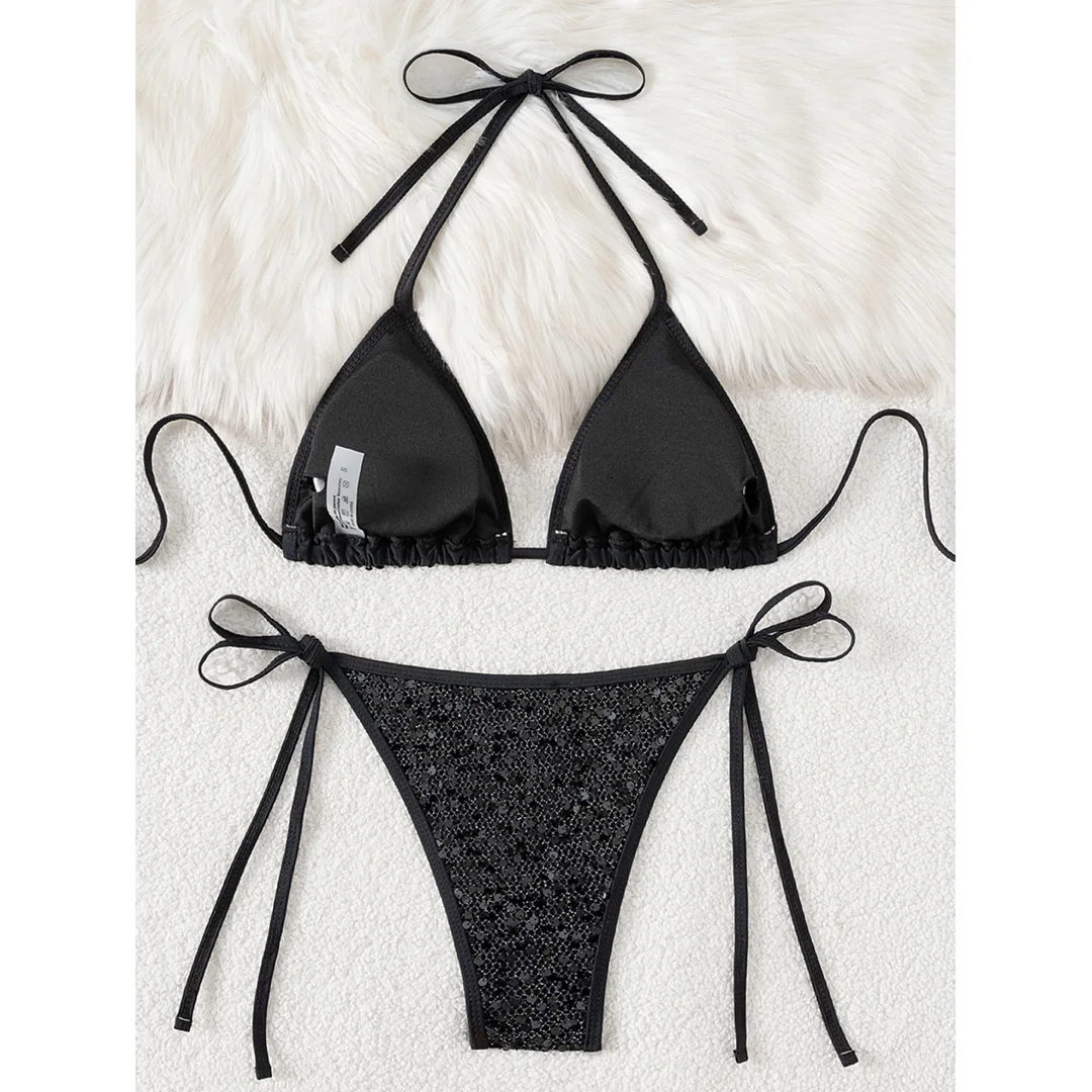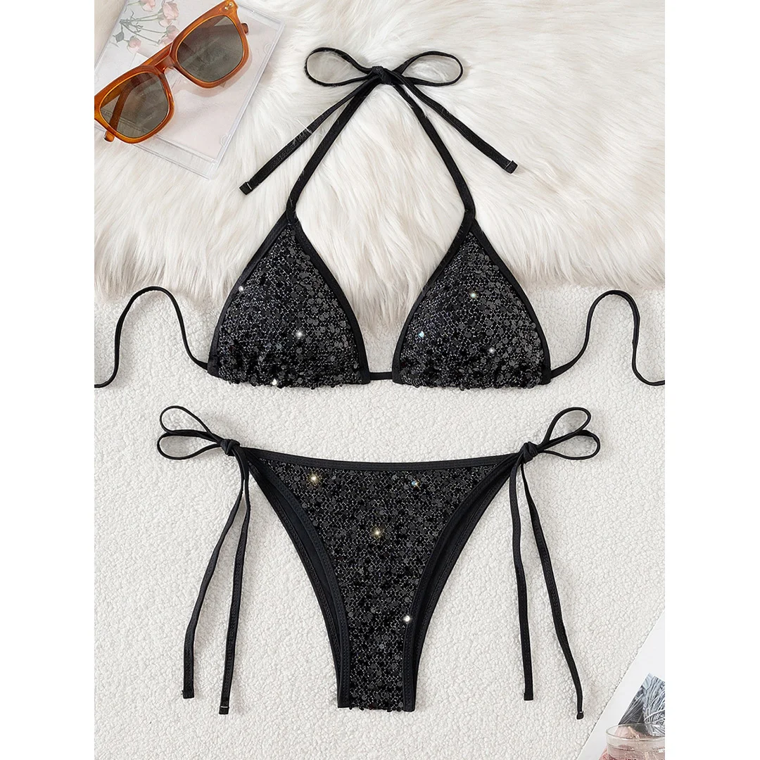 Sparkling Sequins Halter High Leg Cut Bikini Women Swimwear Female Swimsuit Two-pieces Bikini set Bather Bathing Suit Swim V6678