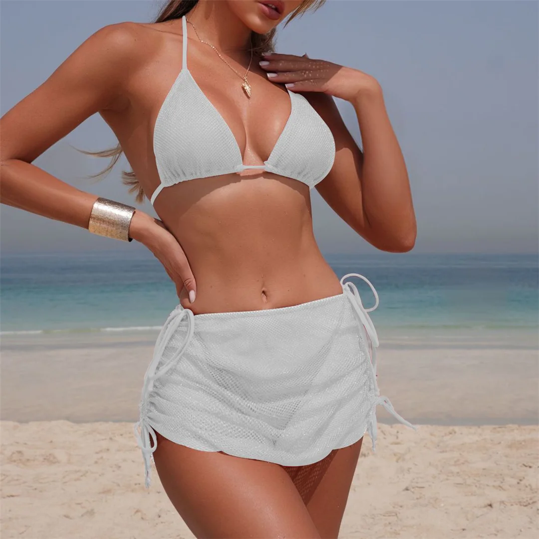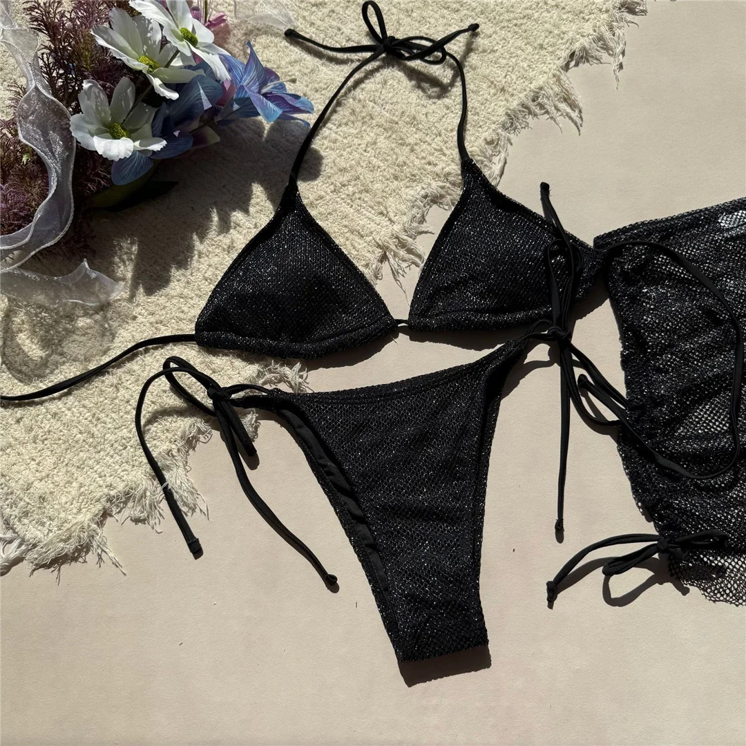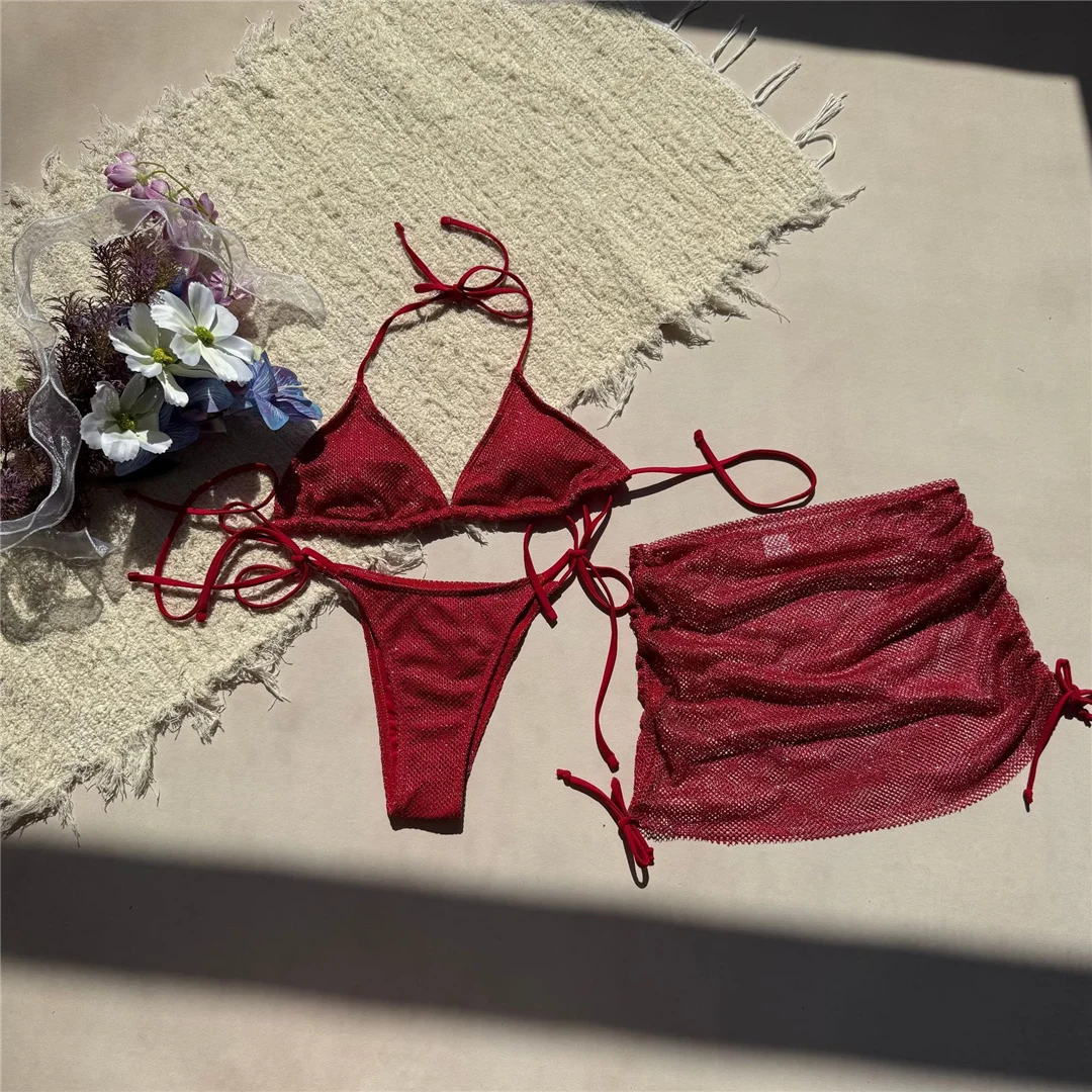 Sparkling With Skirt High Leg Cut Bikini Female Swimsuit Women Swimwear Three-pieces Bikini set Bather Bathing Suit Swim V7172