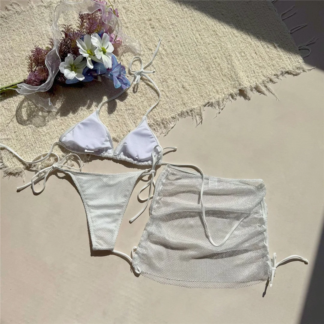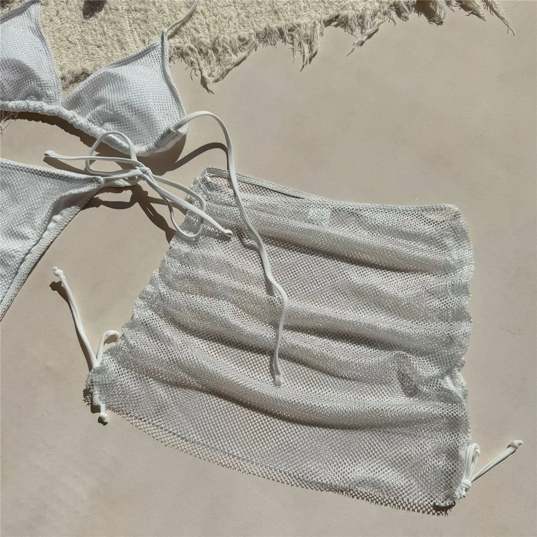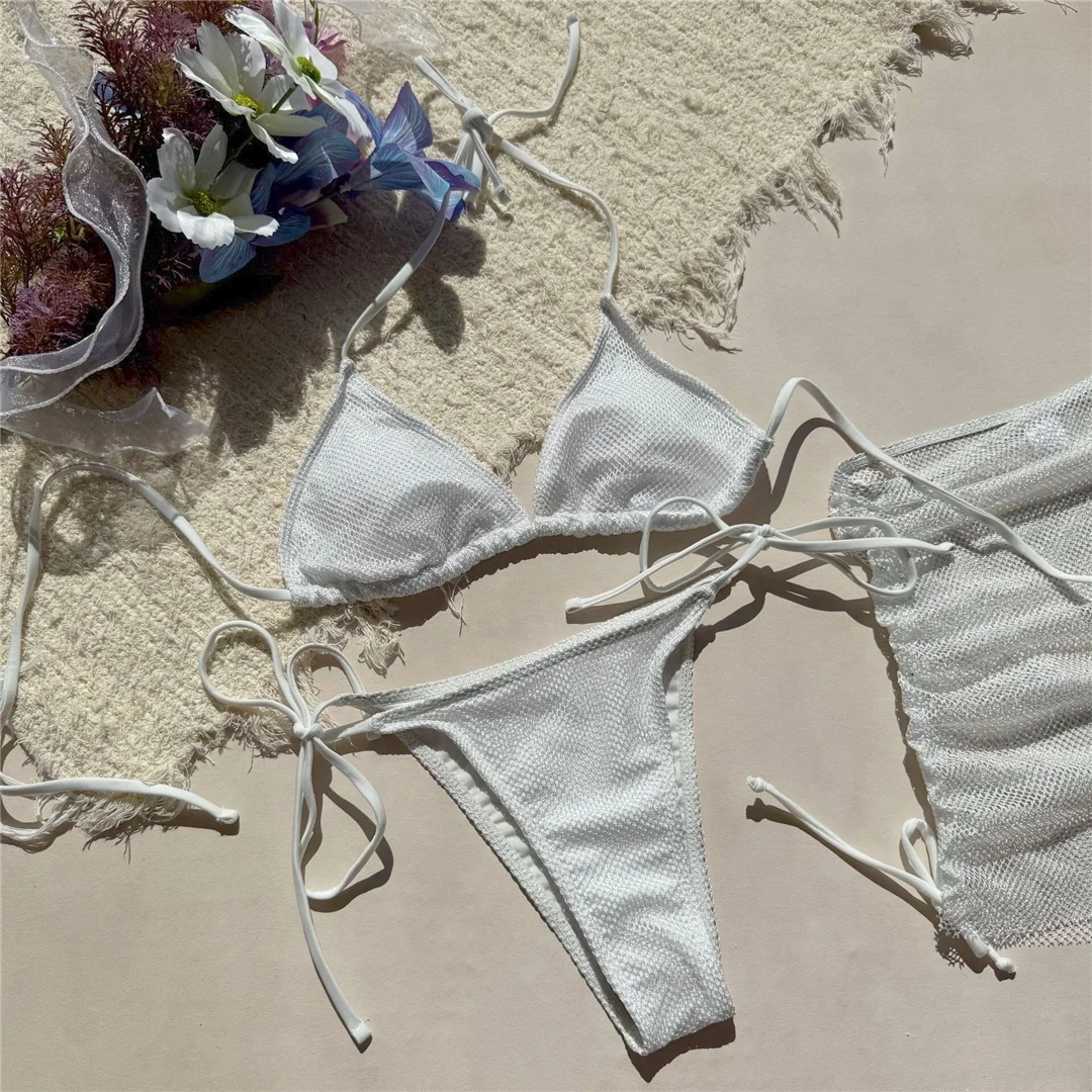 Sparkling With Skirt High Leg Cut Bikini Female Swimsuit Women Swimwear Three-pieces Bikini set Bather Bathing Suit Swim V7172