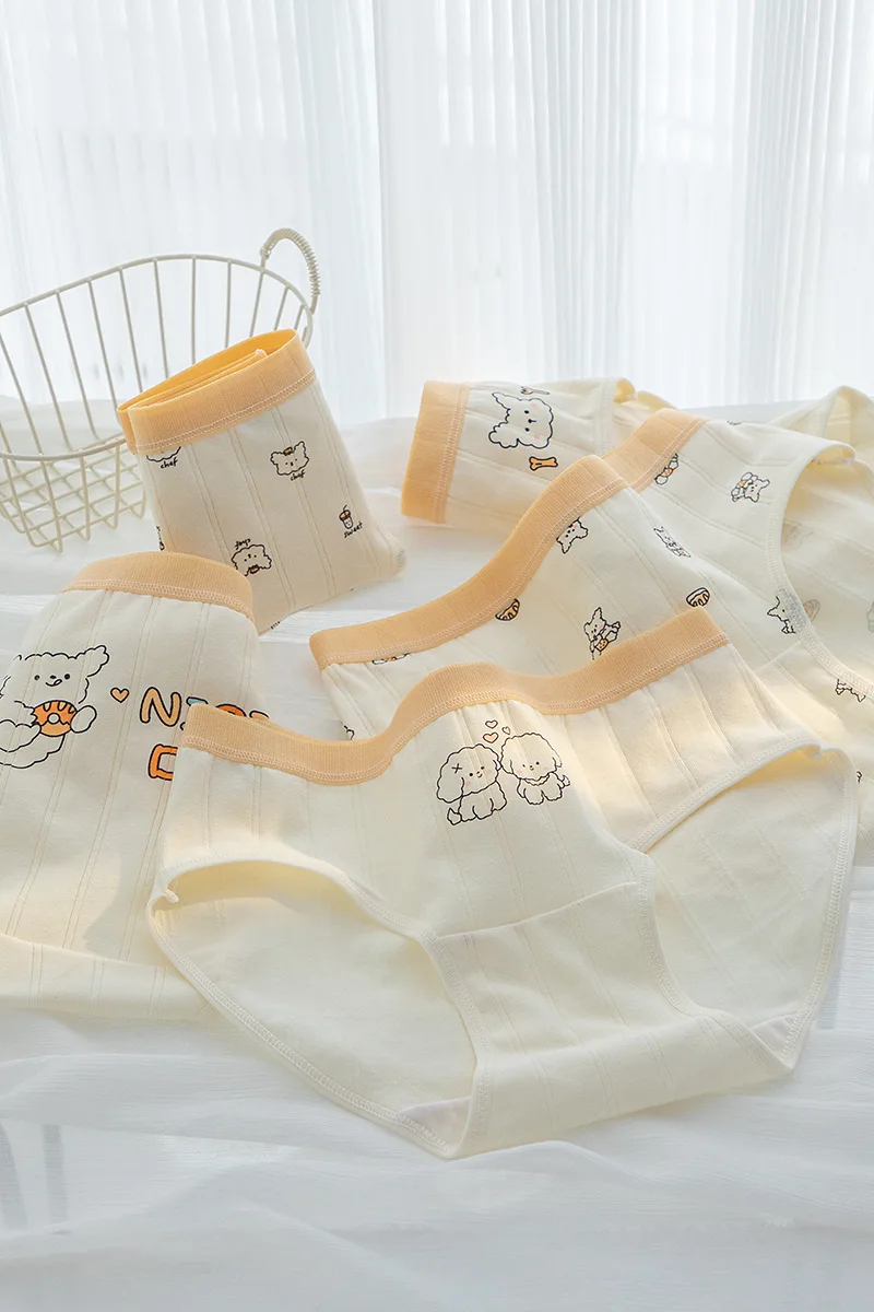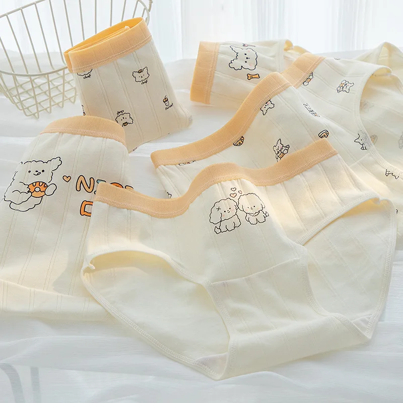 SP&CITY Dog Print Cartoon Cute Panties for Women Mid Waist Breathable Cotton Women’s Underwear Student Seamless Daily Briefs