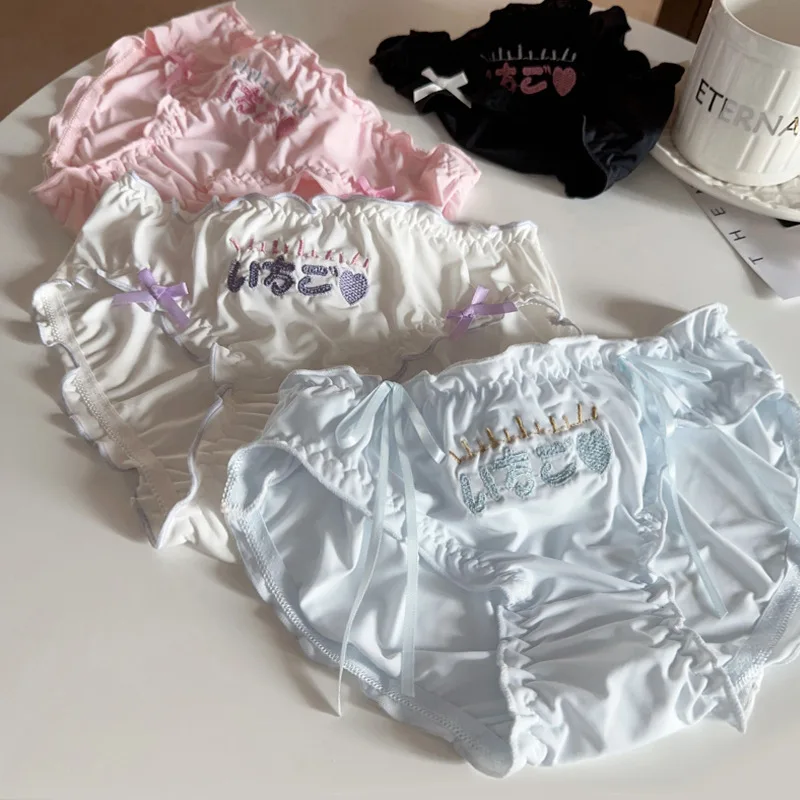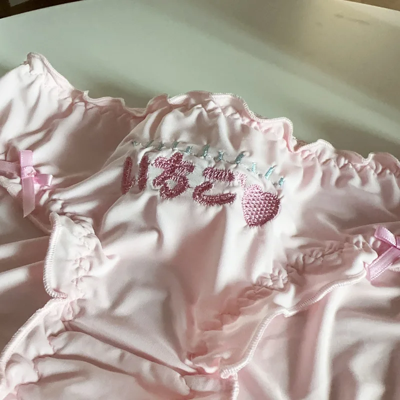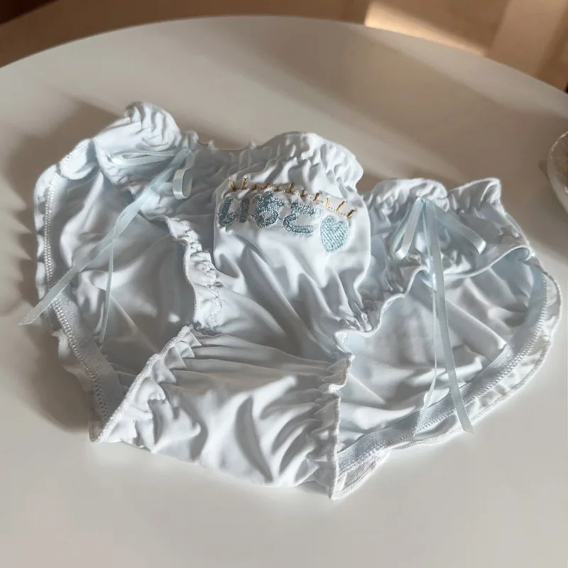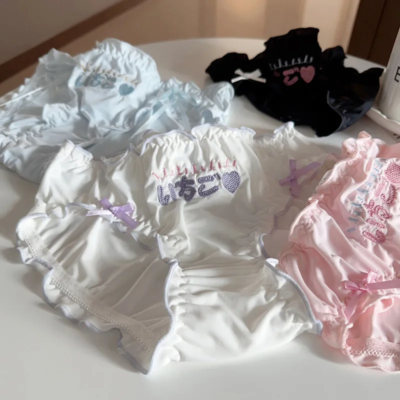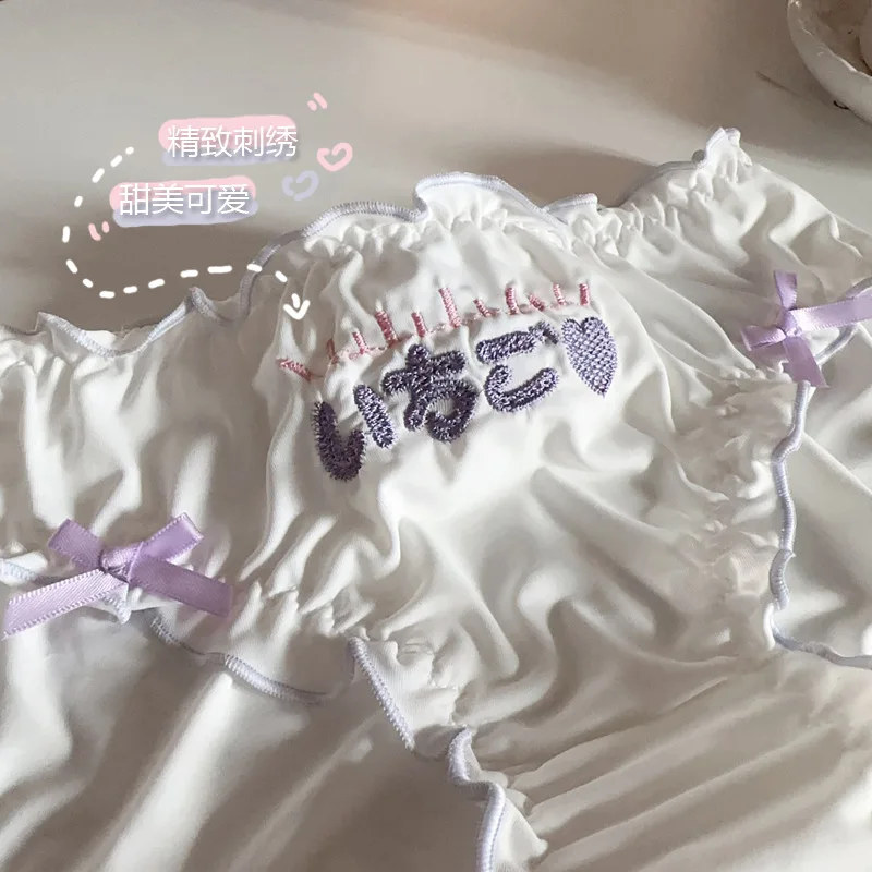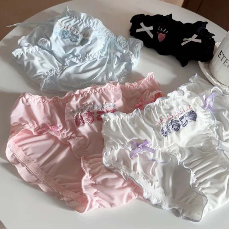 SP&CITY Embroidered Letters Ice Silk Cute Underwear For Cute Girls Cotton Crotch Mid Waist Ruffle Women’s Panties Student Briefs