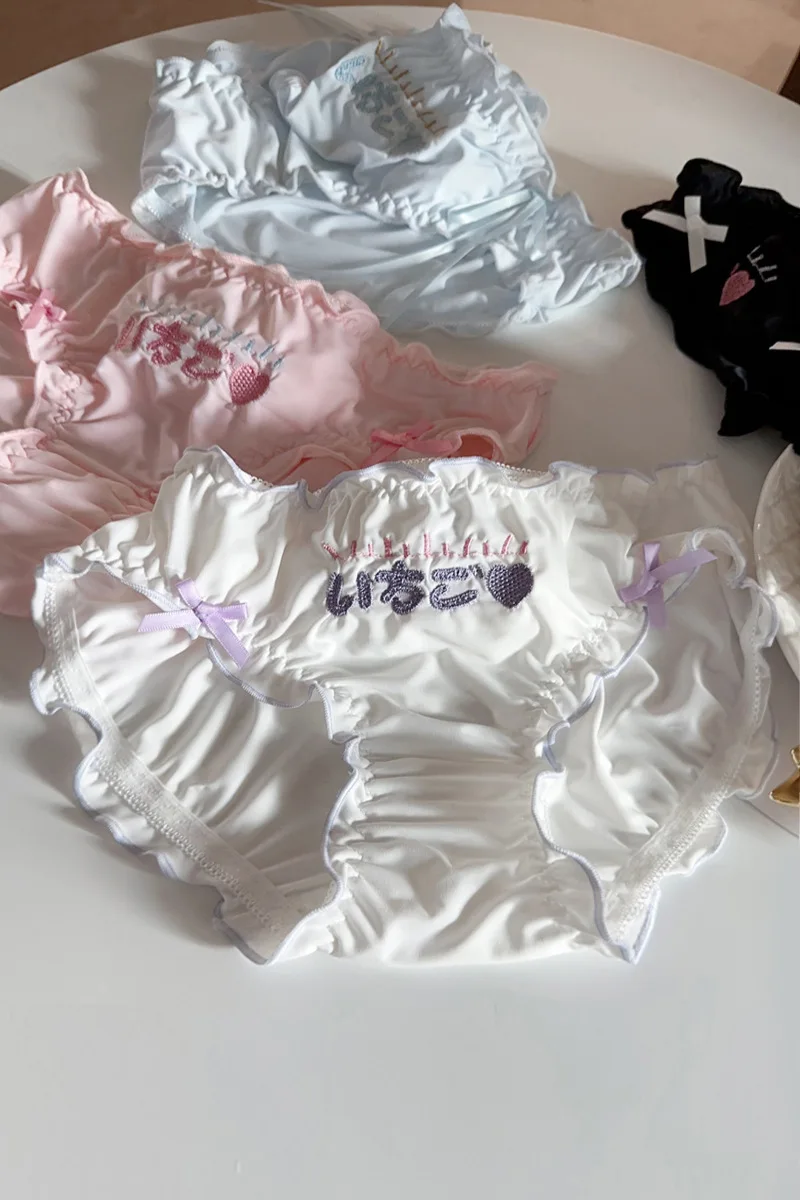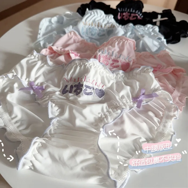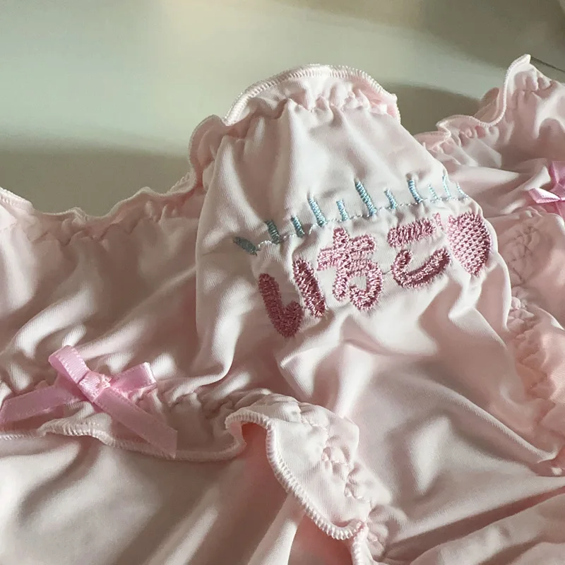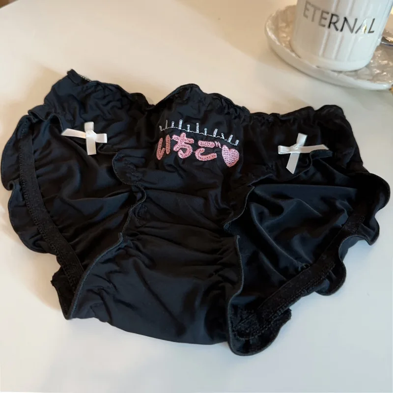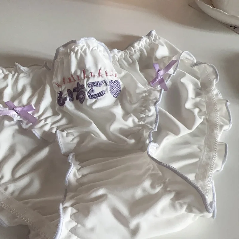 SP&CITY Embroidered Letters Ice Silk Cute Underwear For Cute Girls Cotton Crotch Mid Waist Ruffle Women’s Panties Student Briefs