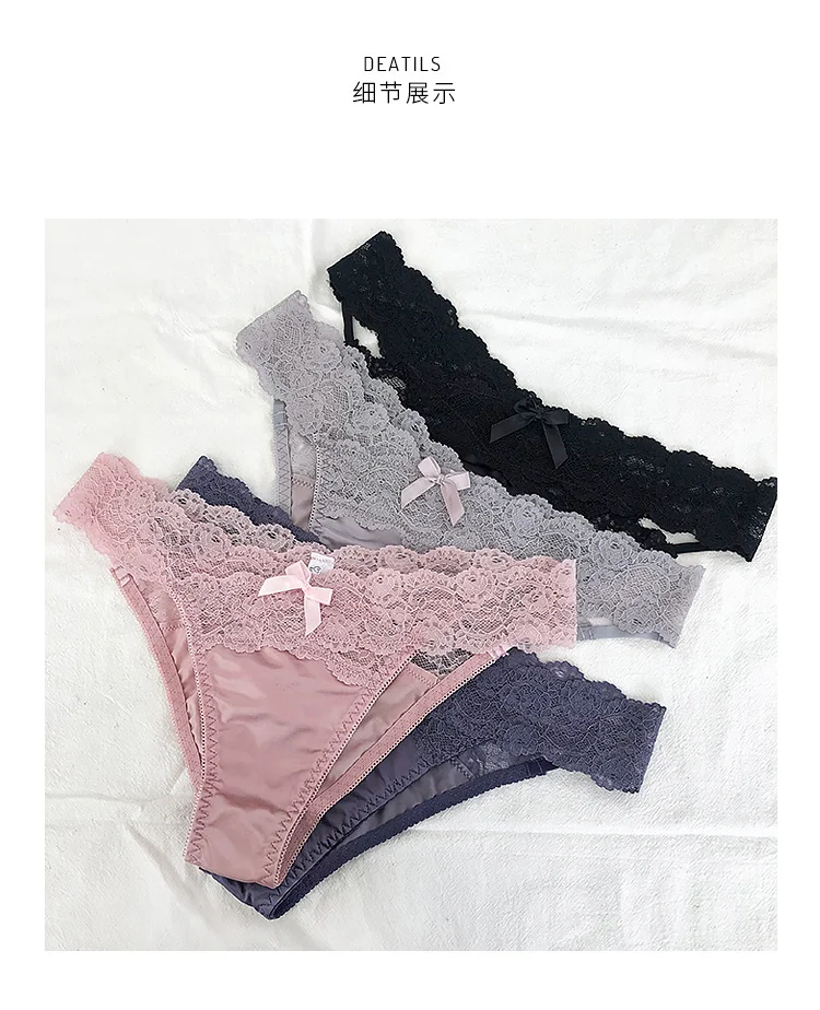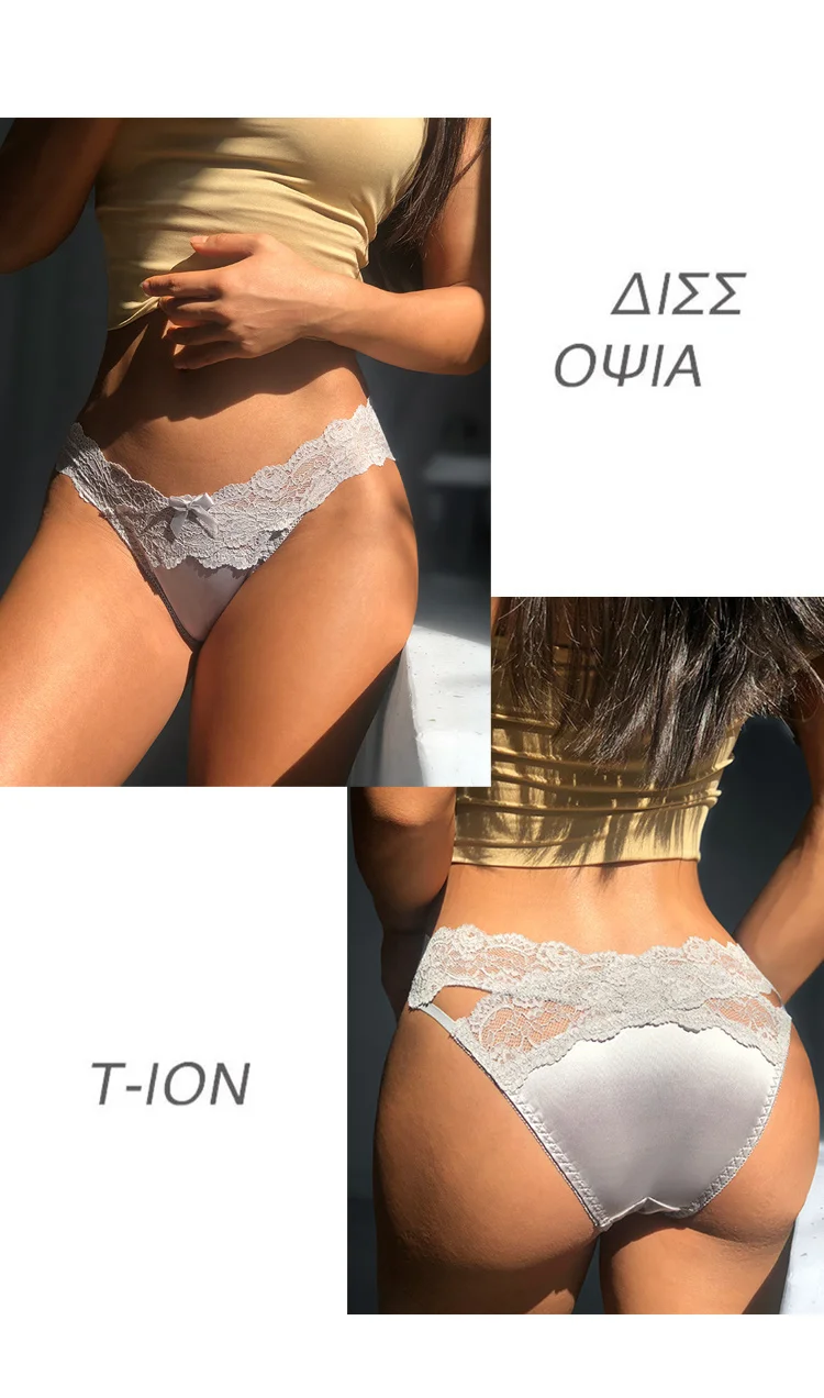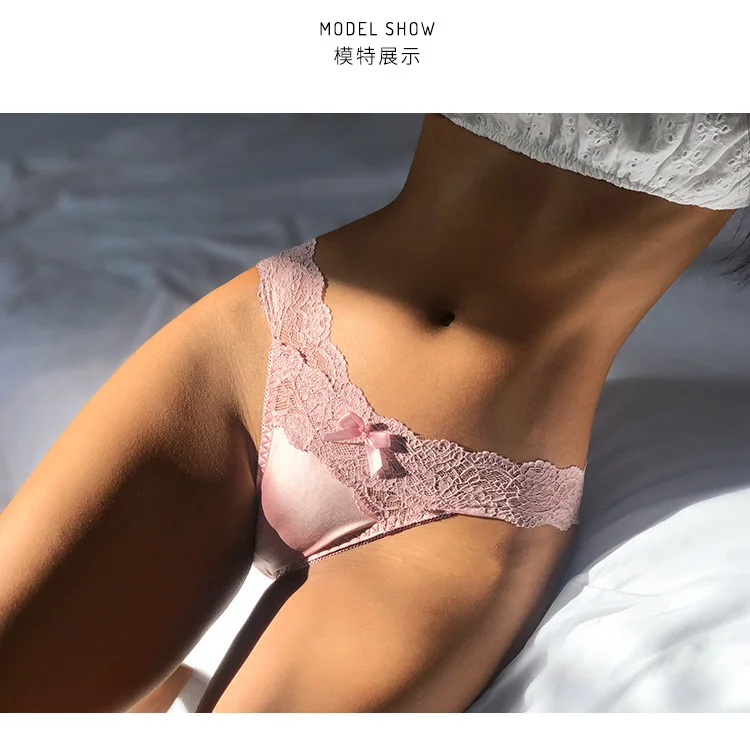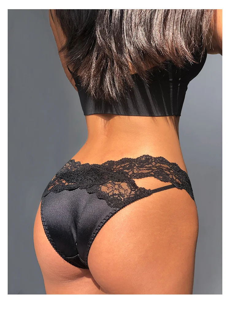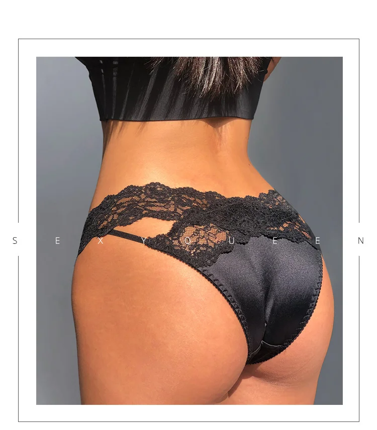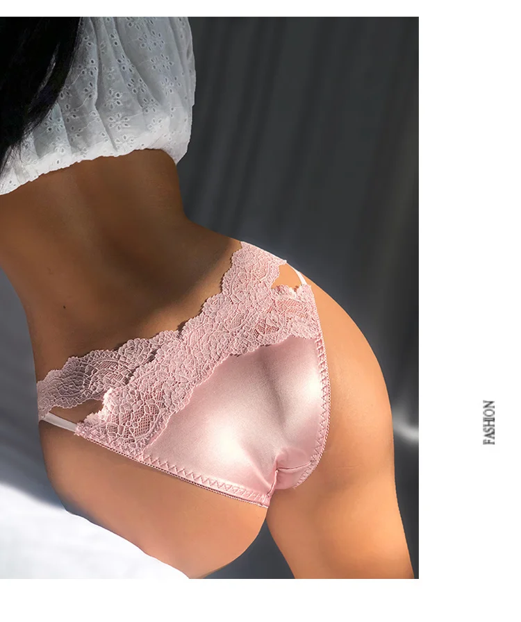 SP&CITY Satin Lace Sexy Women’s Underwear Low Waist Transparent Hollow Out Panties Breathable Soft Seamless Briefs Lingerie