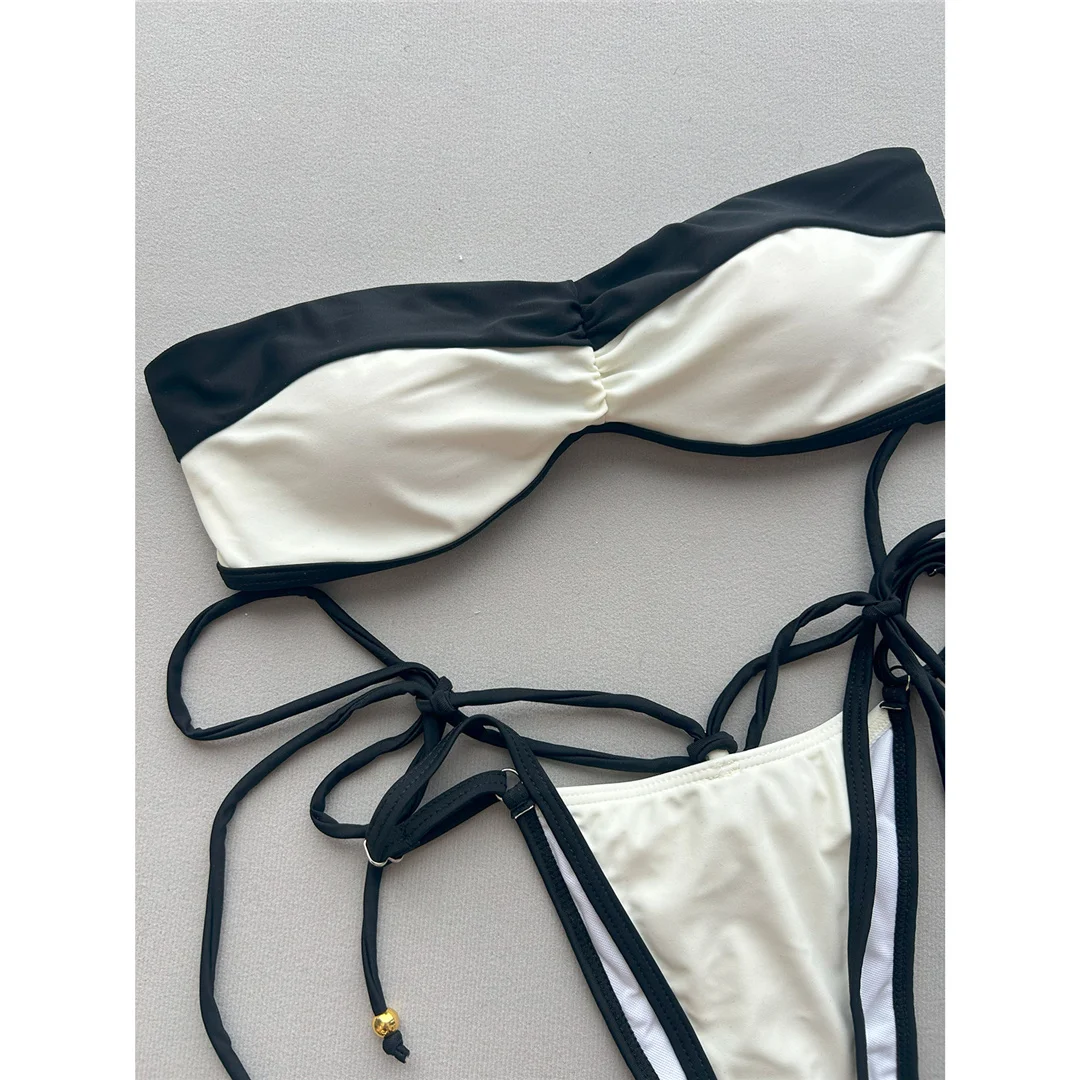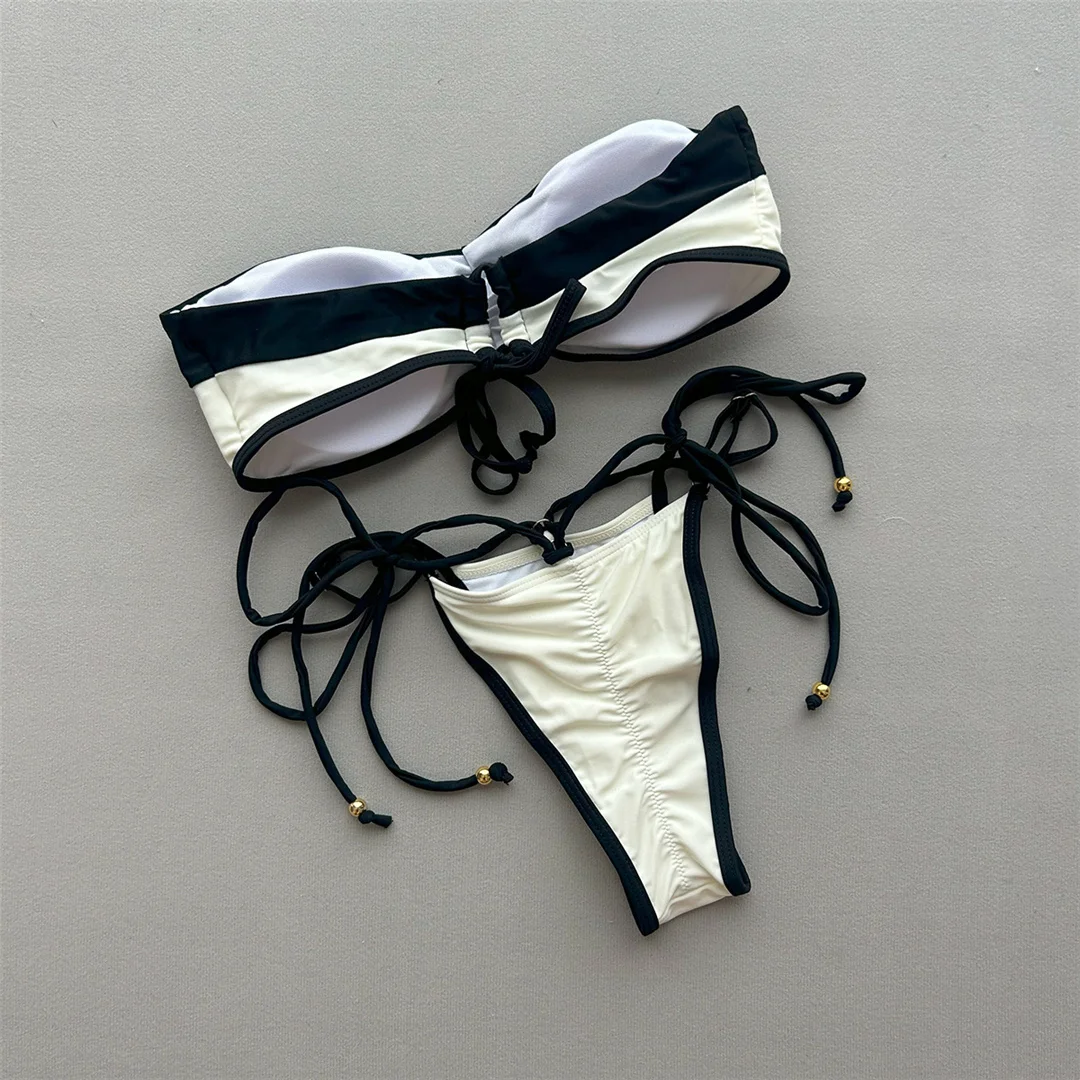 Splicing Bandeau Scrunch Butt Bikini Female Swimsuit Women Swimwear Two-pieces Bikini set Padded Bather Bathing Suit Swim V7380