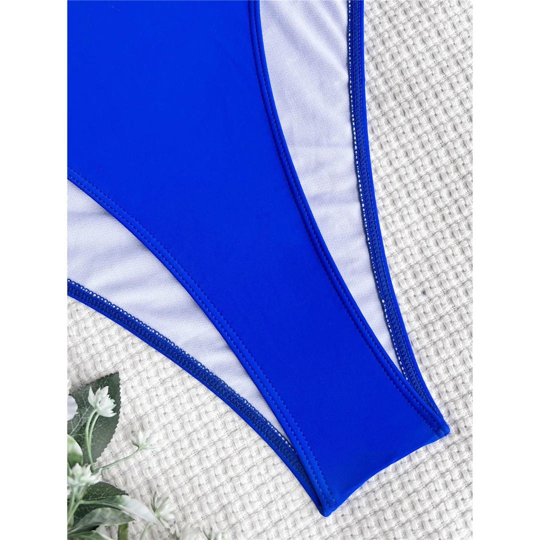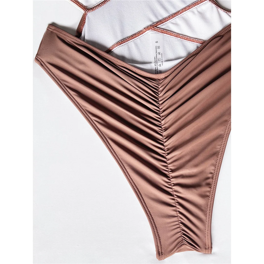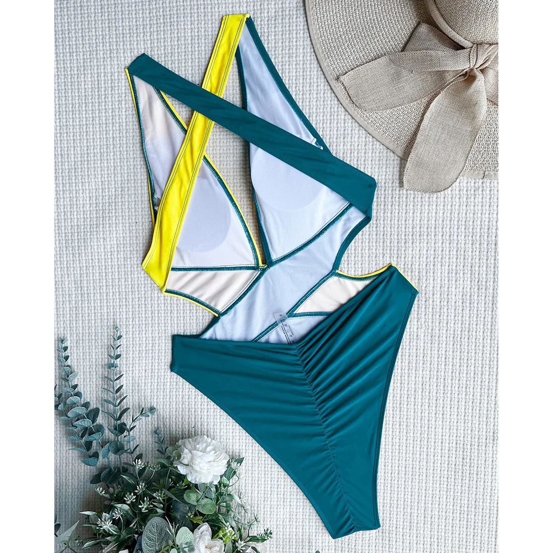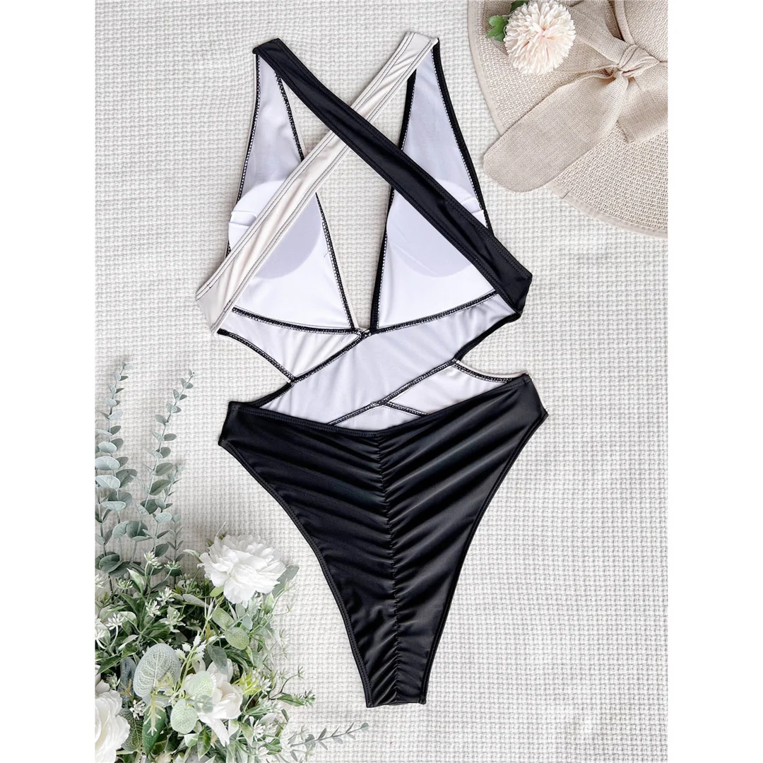 Splicing Deep V Neck Cross Back One Piece Swimsuit Women Swimwear Female Monokini Scrunch Butt Bather Bathing Suit Swim V3787