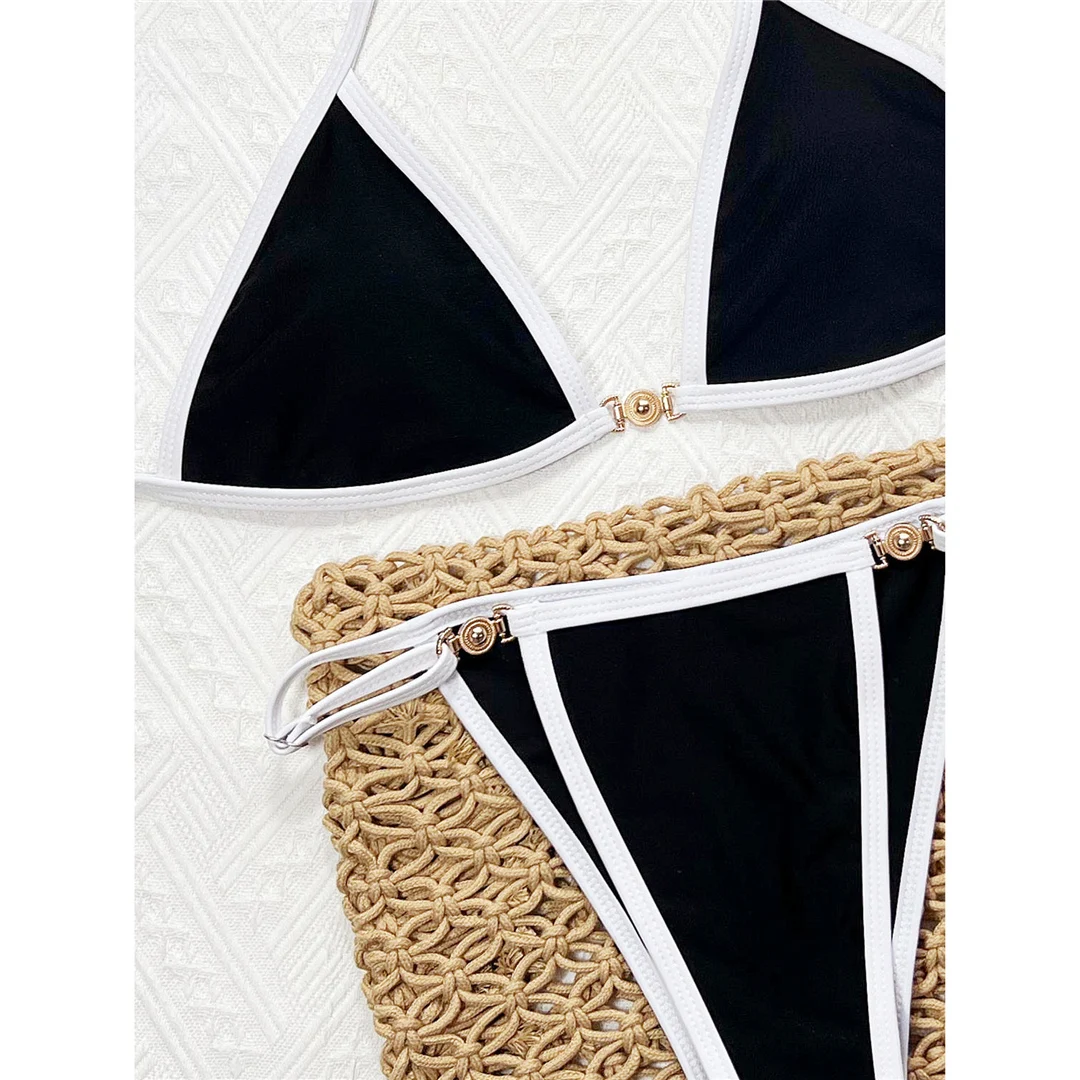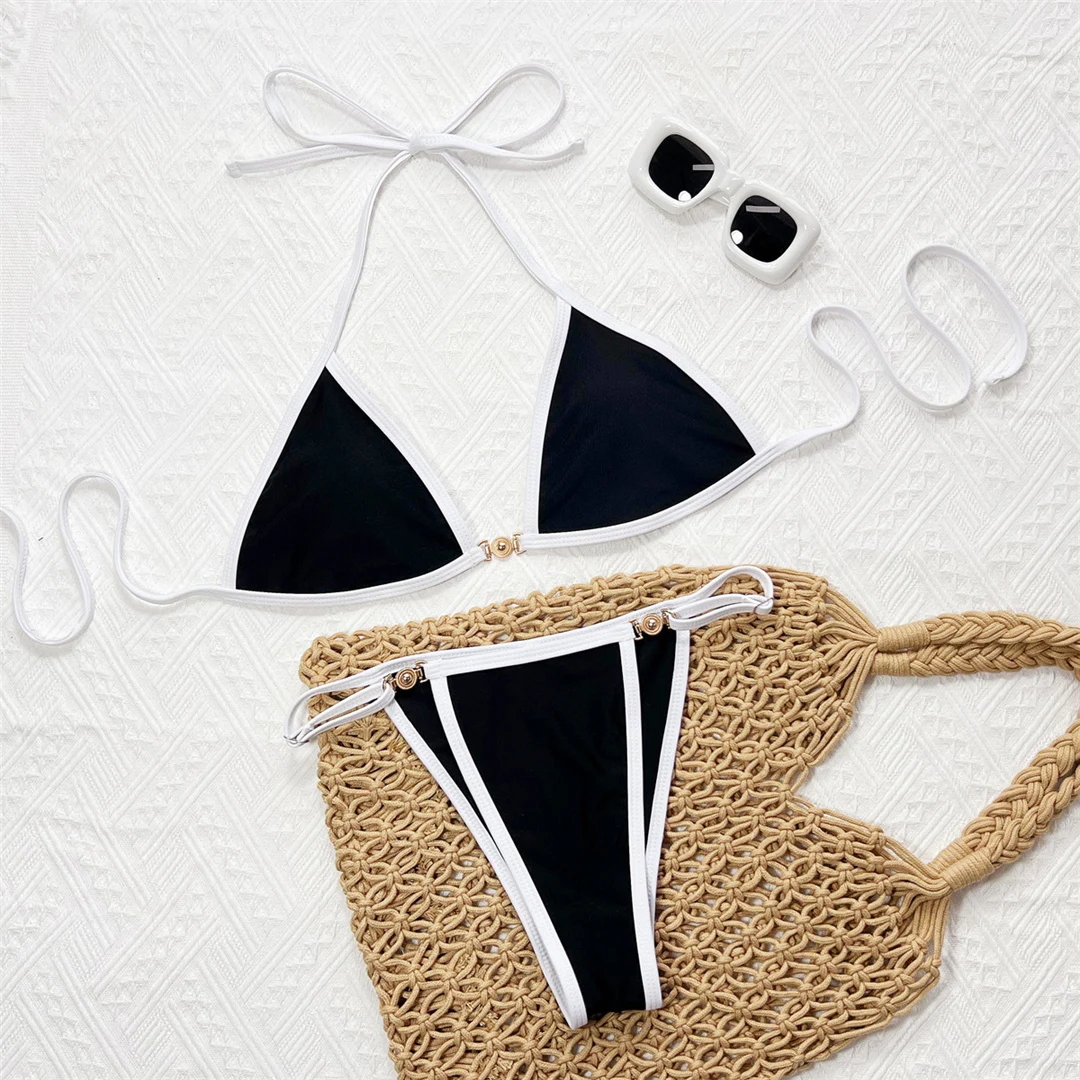 Splicing Halter High Leg Cut Bikini Female Swimsuit Women Swimwear Two-pieces Bikini set Padded Bather Bathing Suit Swim V7038