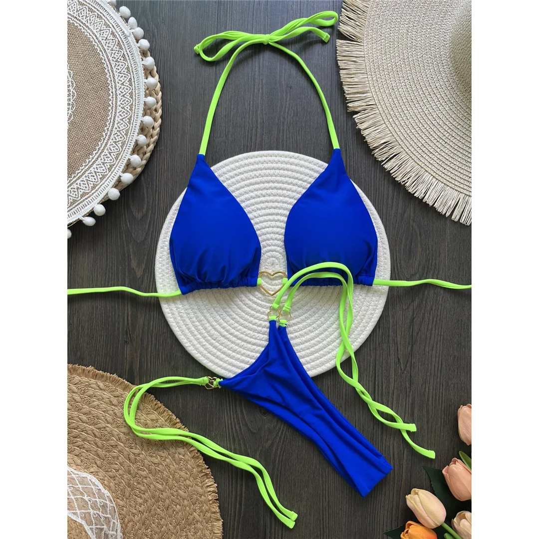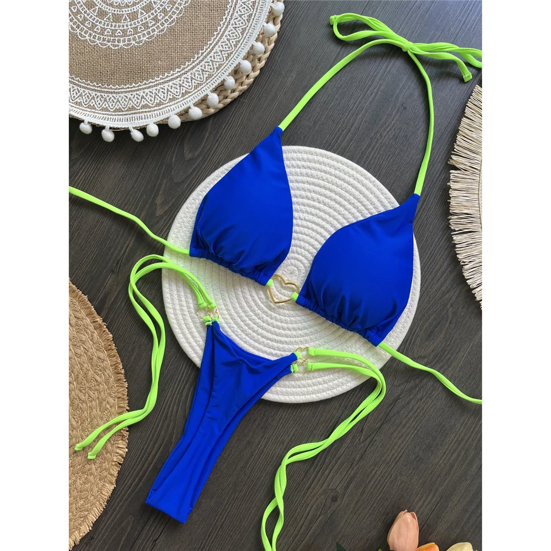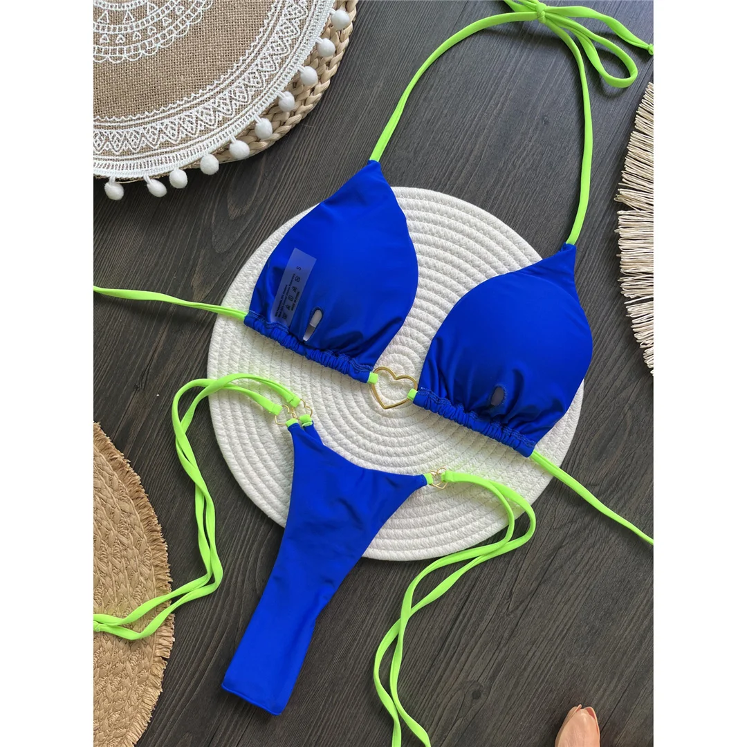 Splicing Halter Mini Thong High Cut Bikini Women Swimwear Female Swimsuit Two-pieces Bikini set Bather Bathing Suit Swim V6071