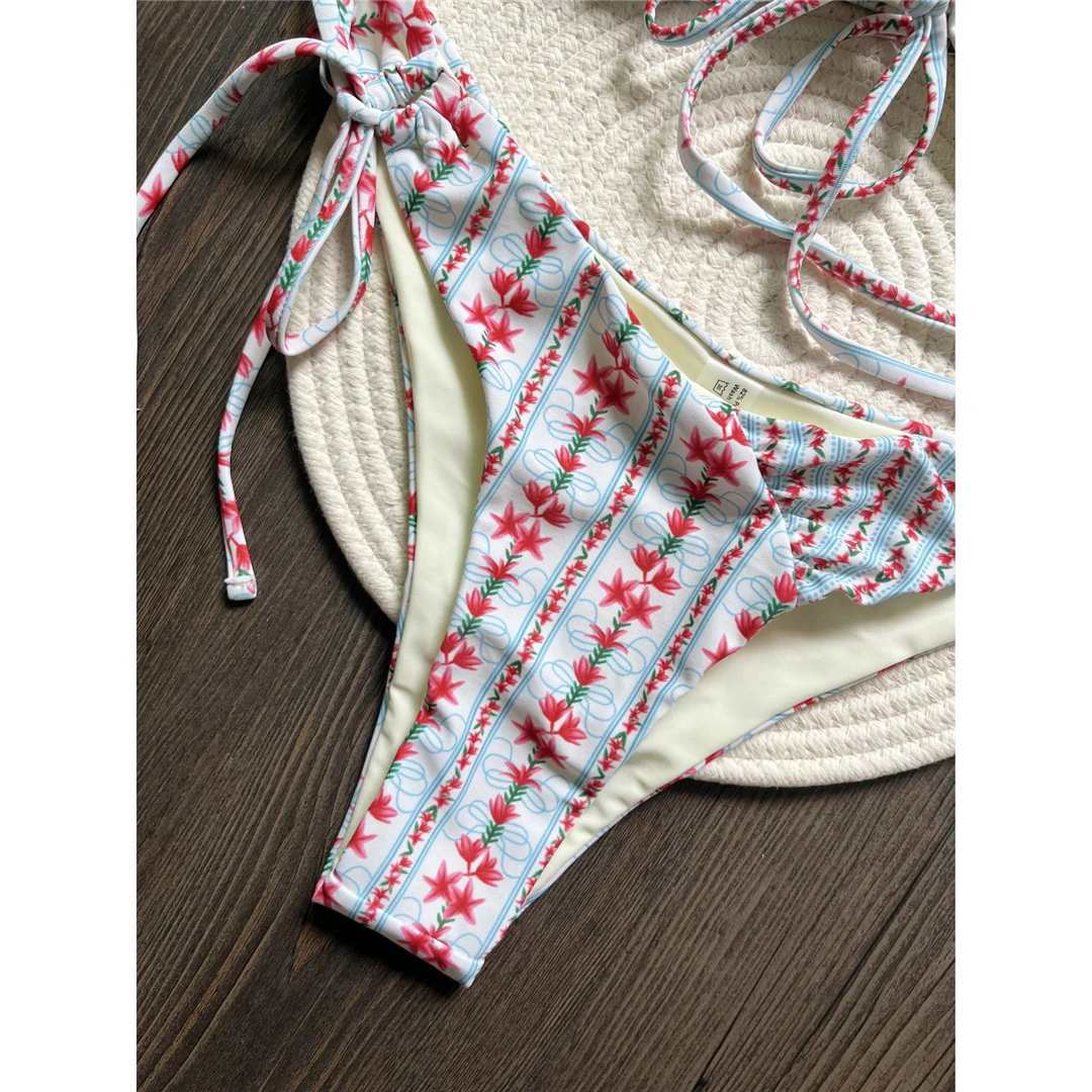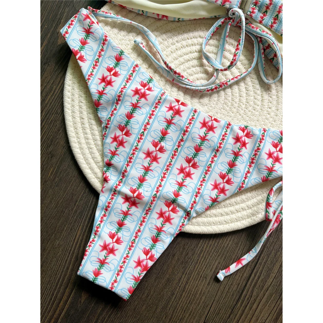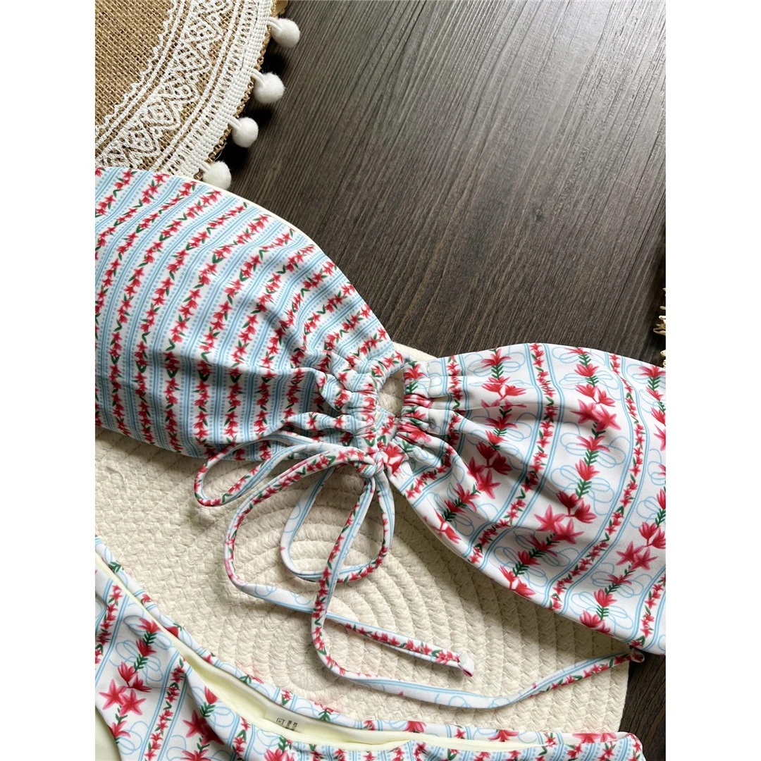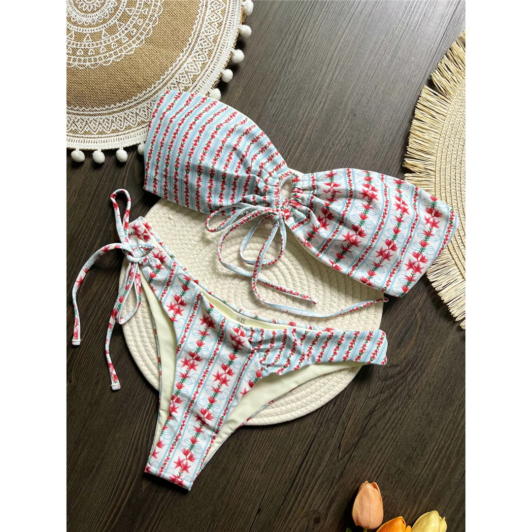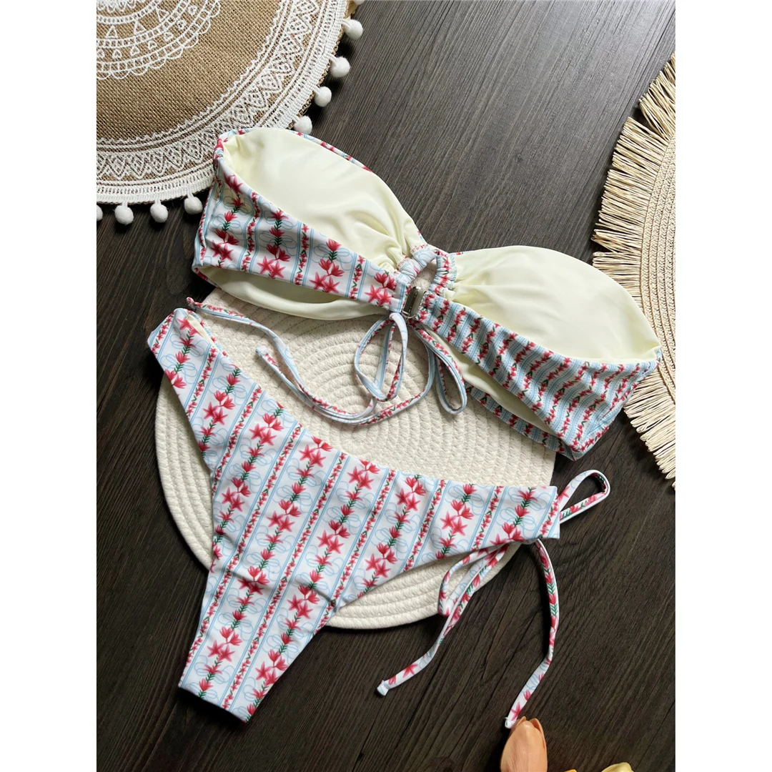 Striped Printed Bandeau High Leg Cut Bikini Female Swimsuit Women Swimwear Two-pieces Bikini set Bather Bathing Suit Swim V6045