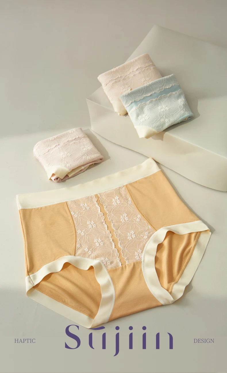SUJIIN 3Pcs/Lot High Waist Lace Seamless Panties for Women Modal Antimicrobial Underwear Female Comfort Underpants Women XN005