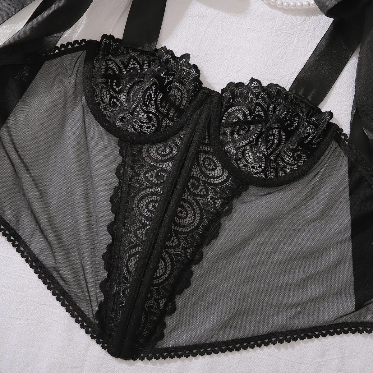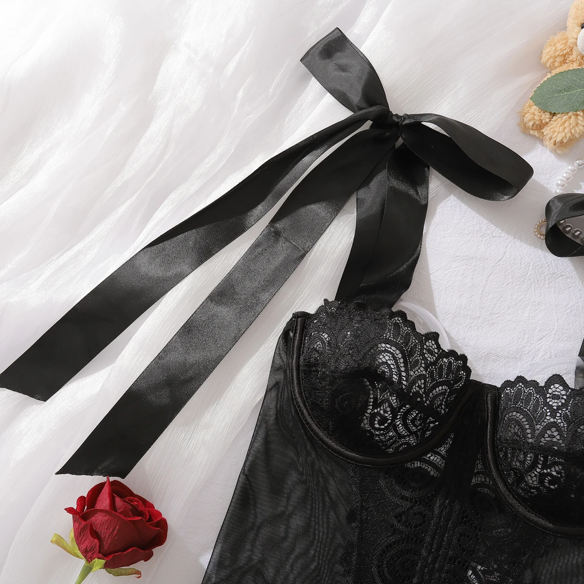 Summer Women’s Lace Sexy Internet Celebrity Versatile Backless Steel Ring Fishbone Mini Top Suspender Spicy Women’s Clothing