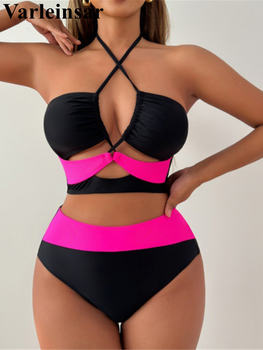 S – XL New Splicing Halter Female Swimsuit High Waist Bikini Women Swimwear Two-pieces Bikini set Bather Bathing Suit Swim V7517