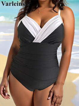 0XL – 3XL V Neck Wrinkled Plus Size Large Size Swimwear Female One Piece Swimsuit Women Padded Bather Bathing Suit Swim V7330
