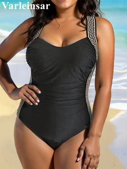 0XL – 3XL Splicing V Neck Large Size Swimwear Plus Size One Piece Swimsuit Female Women Backless Bather Bathing Suit Swim V7328