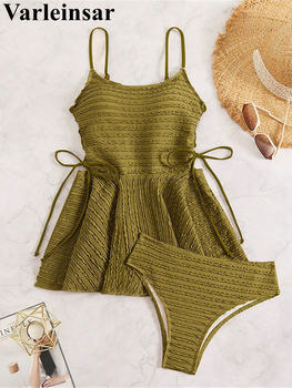 S – XL Wrinkled Tankini Beach Dress Bikini Women Swimwear Female Swimsuit Two-pieces Bikini set Bather Bathing Suit Swim V7288