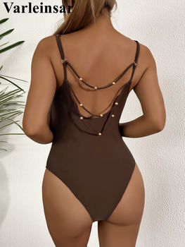 New 2025 Sexy Backless High Leg Cut Women Swimwear One Piece Swimsuit Female Padded Solid Coffee Bather Bathing Suit Swim V7089