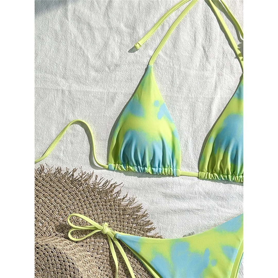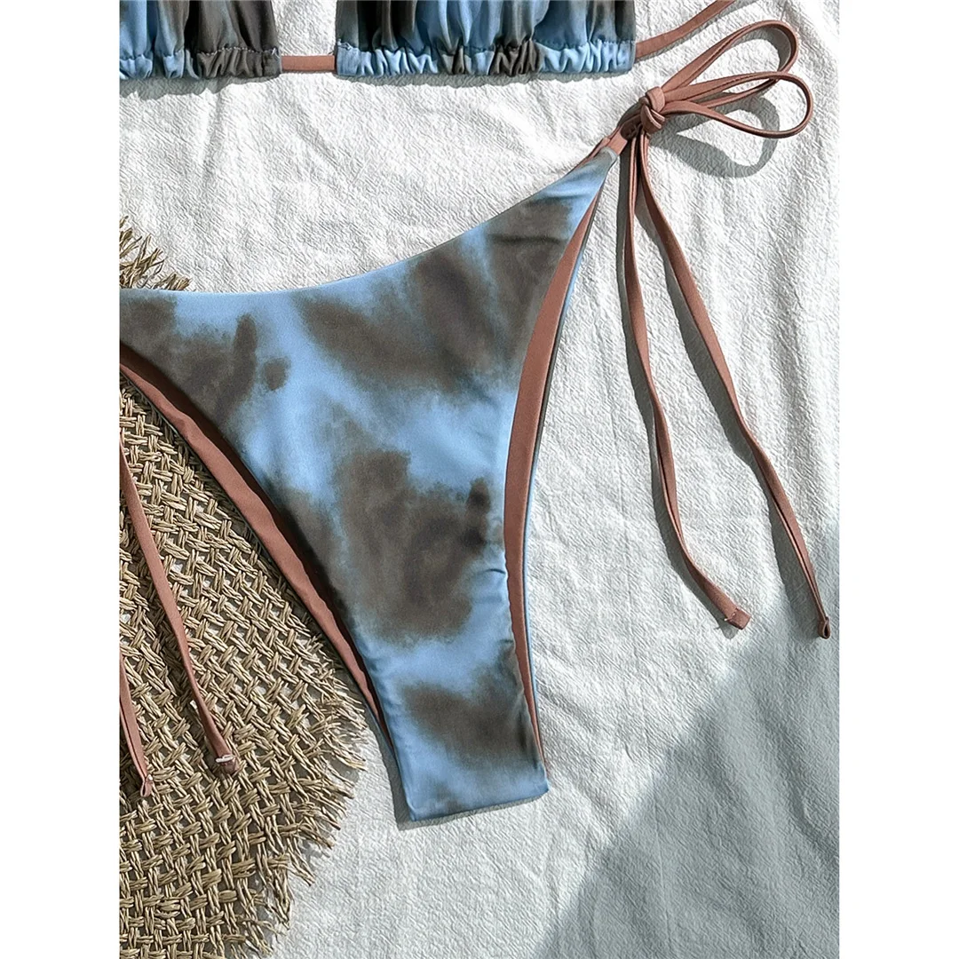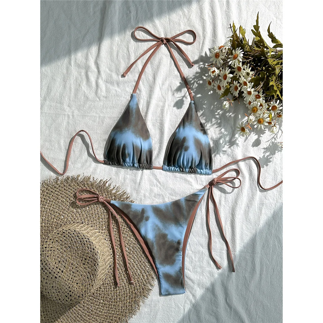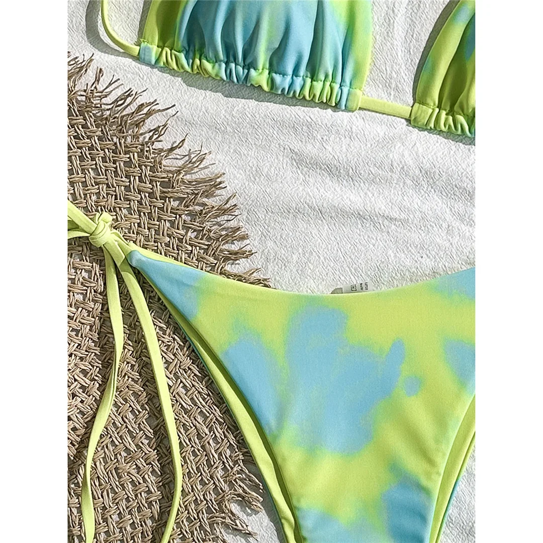 Tie Dye Halter Bikini Female Swimsuit Women Swimwear Two-pieces Bikini set High Cut Leg Strappy Bather Bathing Suit Swim V7218