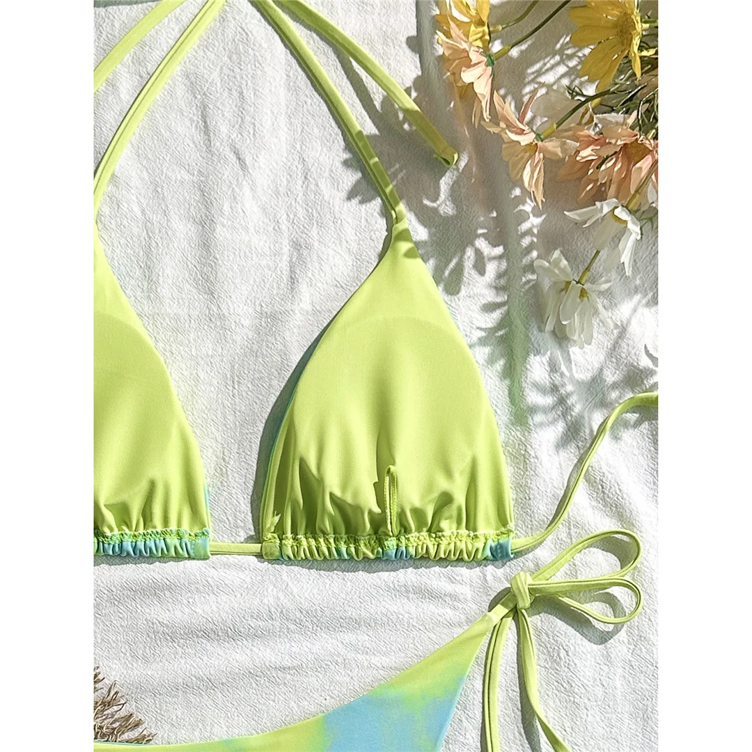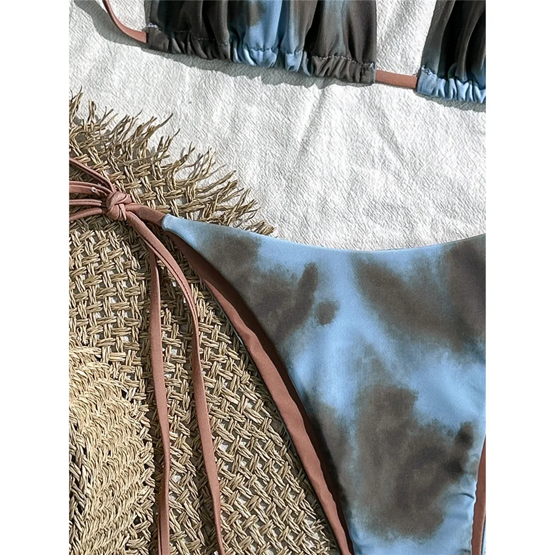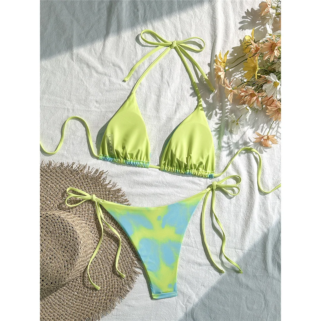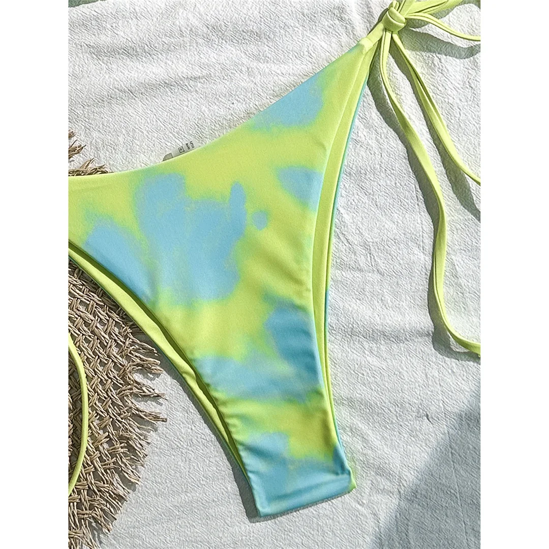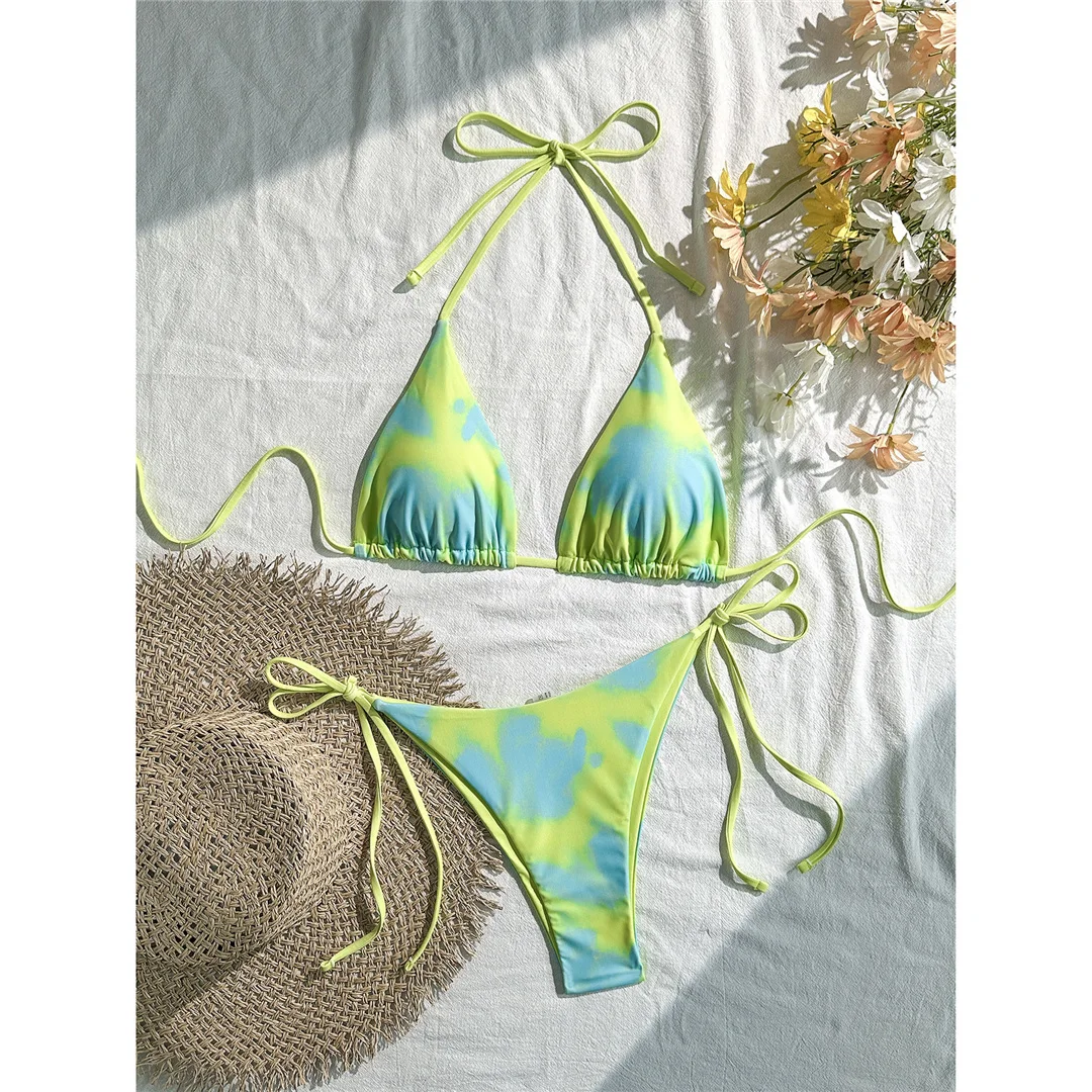 Tie Dye Halter Bikini Female Swimsuit Women Swimwear Two-pieces Bikini set High Cut Leg Strappy Bather Bathing Suit Swim V7218