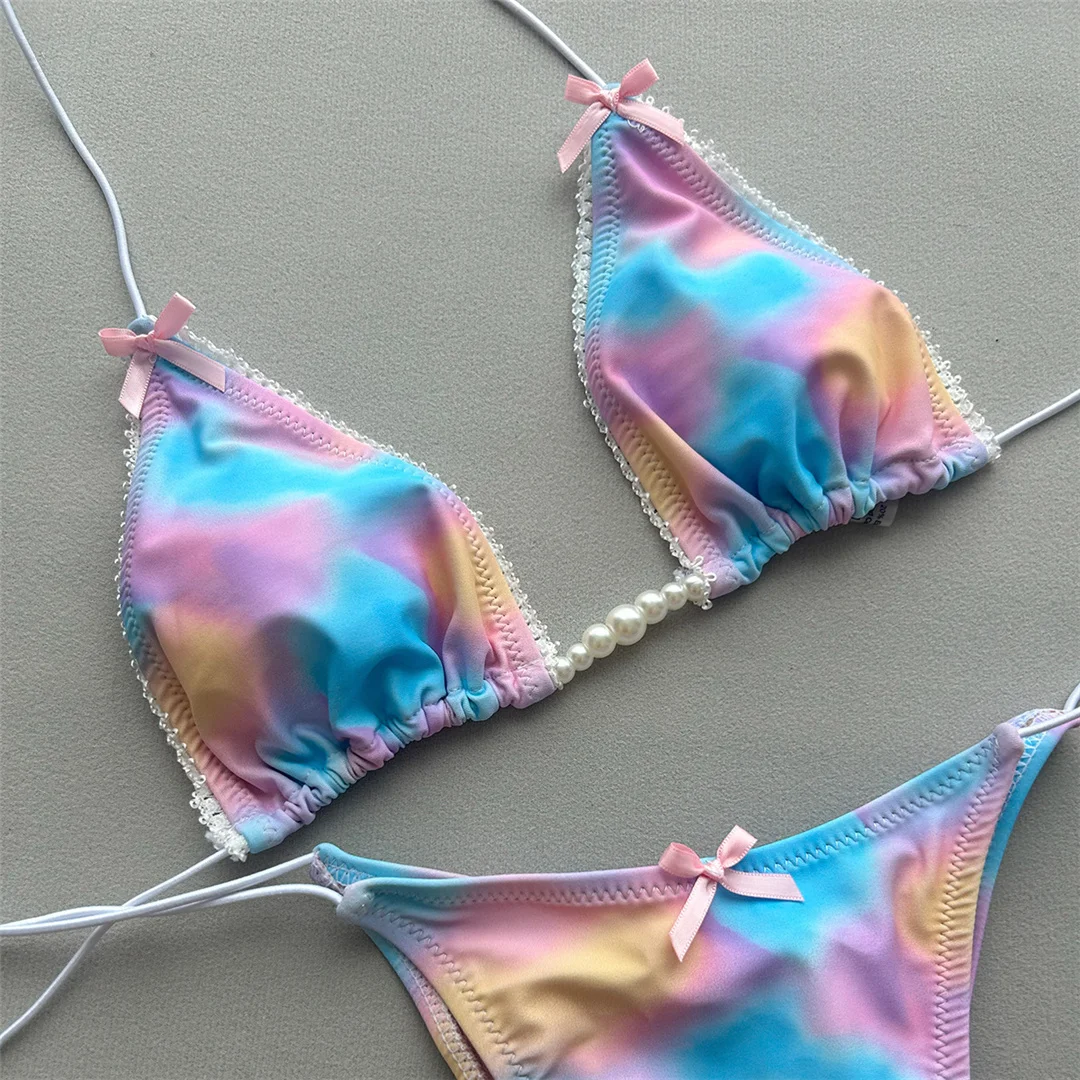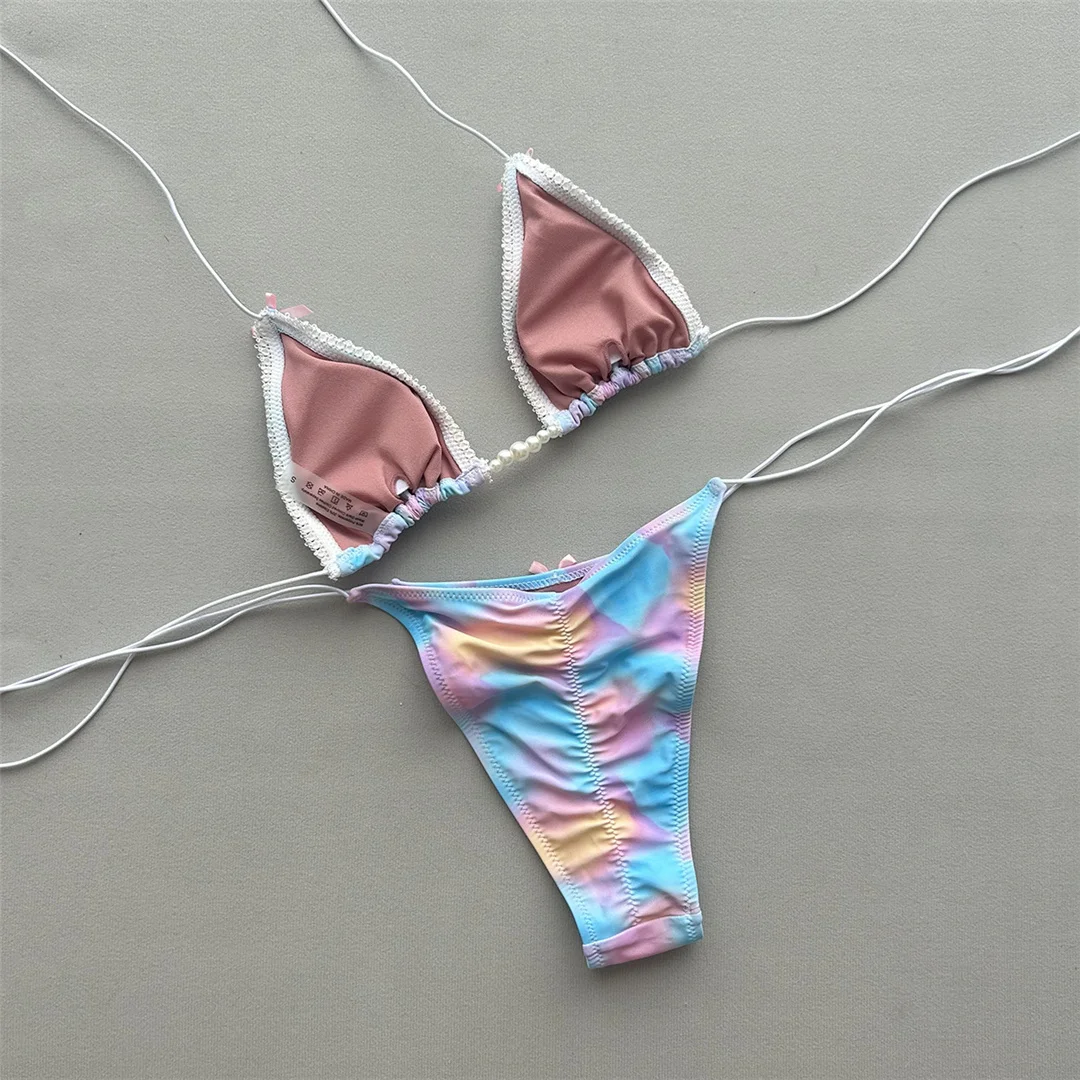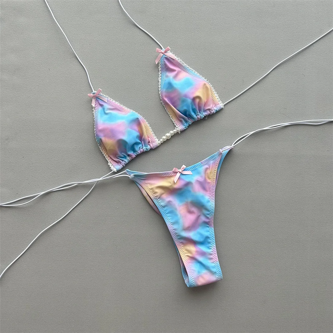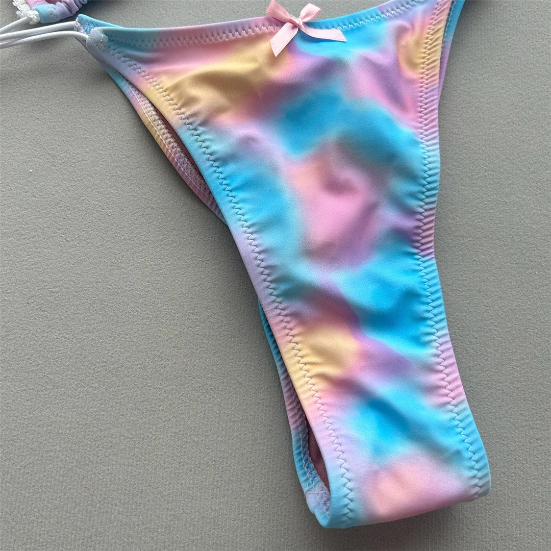 Tie Dye Halter Scrunch Butt Bikini Female Swimsuit Women Swimwear Two-pieces Bikini set Padded Bather Bathing Suit Swim V7393