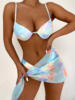 Tie Dye With Sarong Bikini Push Up Swimsuit Female Swimwear Women Three-pieces Bikini set With Bra Cup Bather Bathing Suit V2915