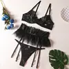 Tornova 3 Piece Set Lingerie Garter Sets Lingerie For Woman Sexy Mini Skirt See-Through Embroidered Bra Erotic Underwear New