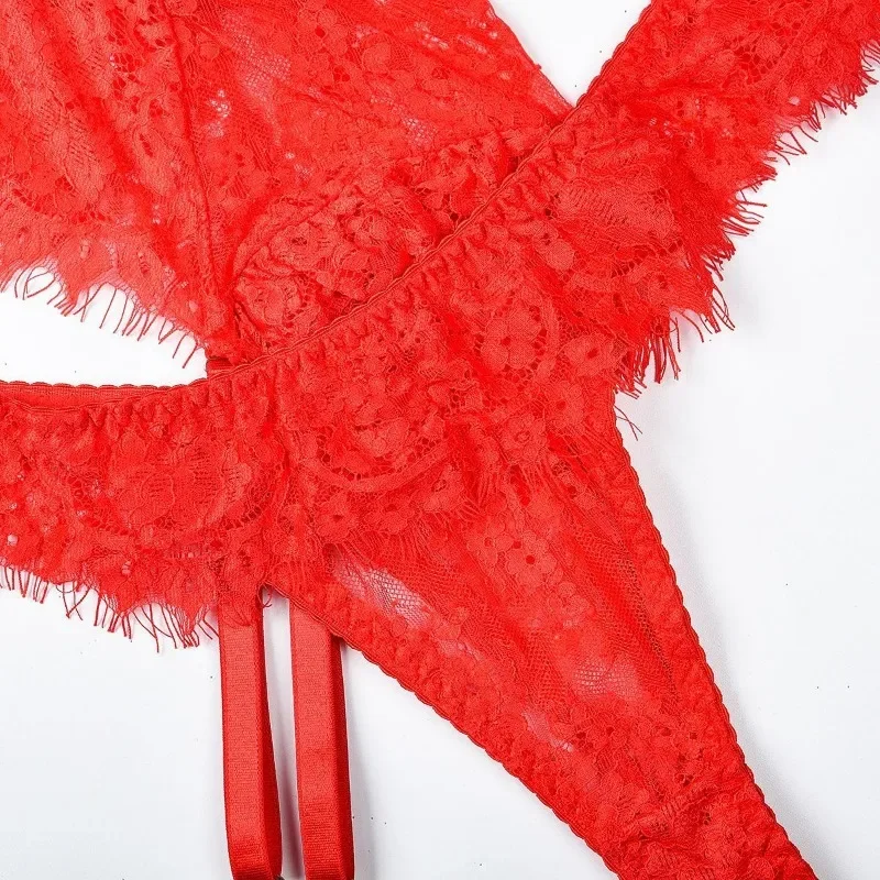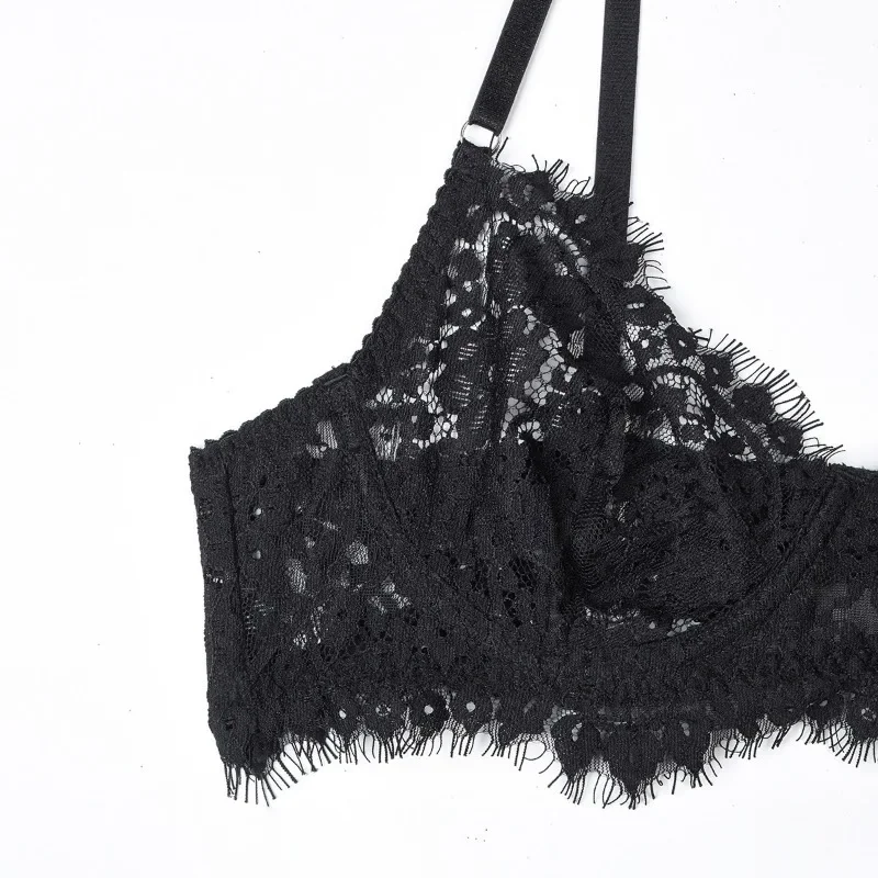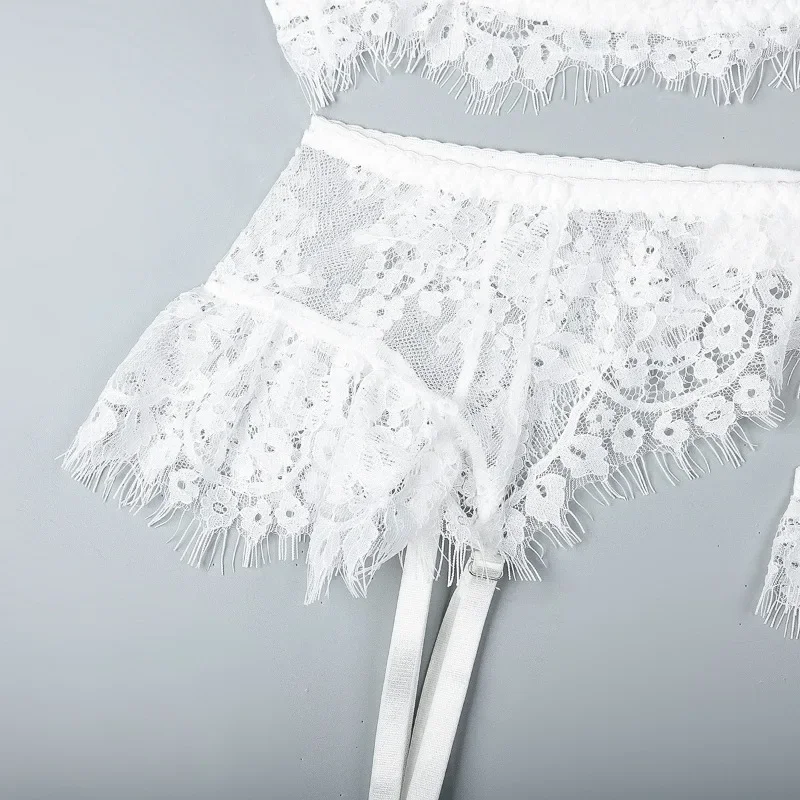 Tornova 4 Piece Set Sexy Lace Underwear Set for Women Mesh See-Through Garters Solid Color Women’s Underwear Sexy Lingerie Set