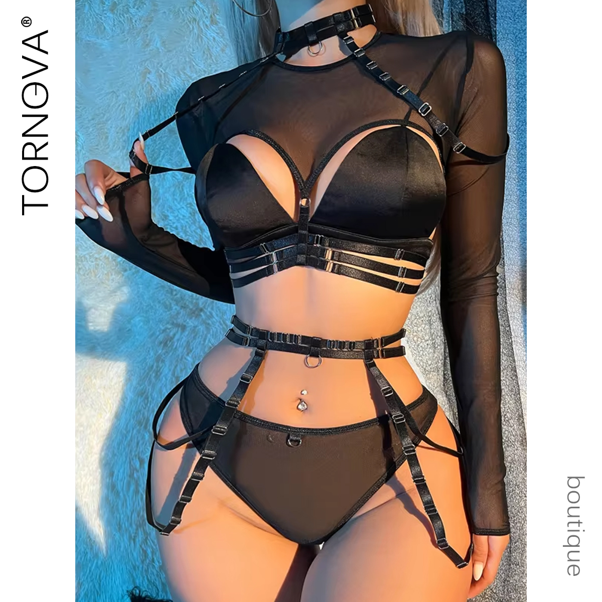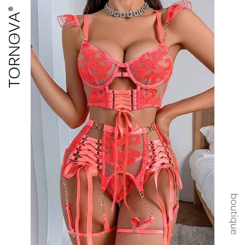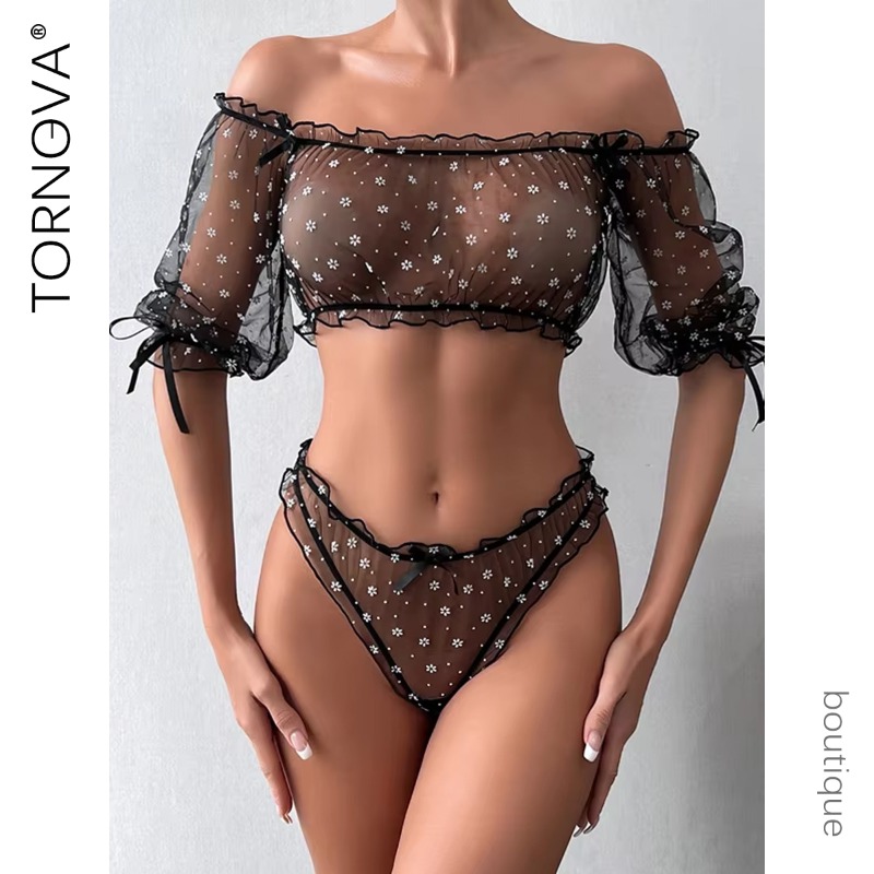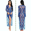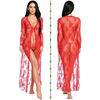 Tornova Sexy Lace Mesh Transparent Sexy Robe Nightgown Women’s See-Through Lace Printing Deep V-Neck Home Ultrathin Nightgown