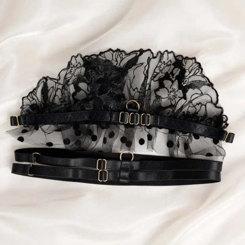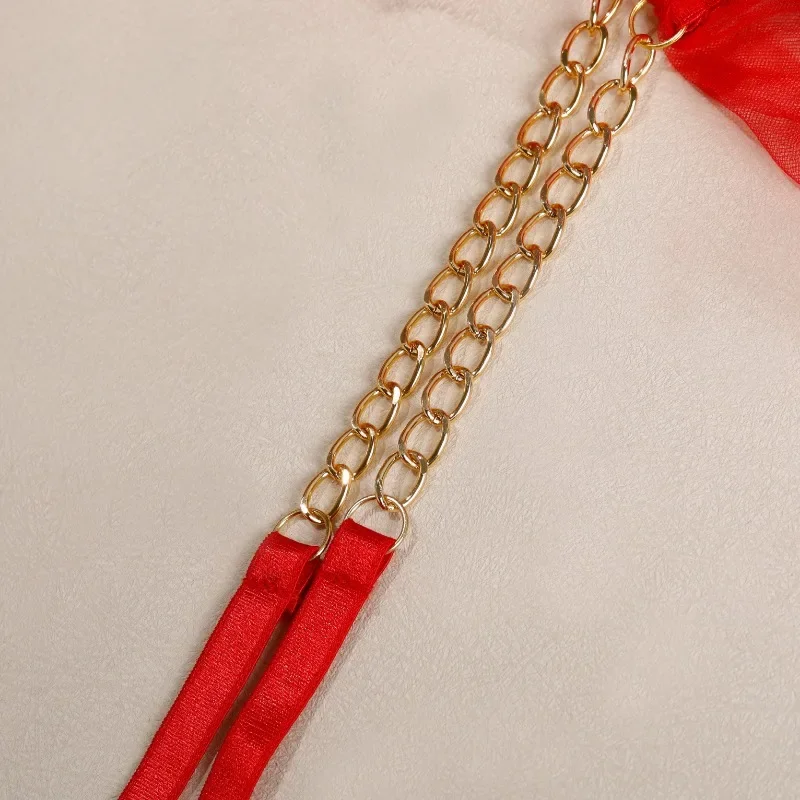 Tornova Sexy Lingerie Metal Chain Patchwork Lace Set For Women Mesh See-Through Embroidered Eyelash Lingerie Garters Sexy Set