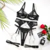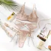 Tornova Sexy Lingerie Set Mesh See-Through Embroidery Patchwork Metal Chain Sexy Bra for Women Metal Garters Sexy Underwear New