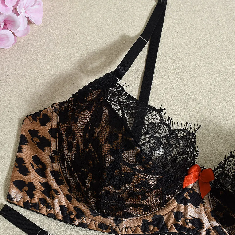 Tornova Women’s Sexy Lingerie Set Contrasting Lace Bra Shape Breathable Cotton G-string Underwear for Lush Curves Bodycon Style