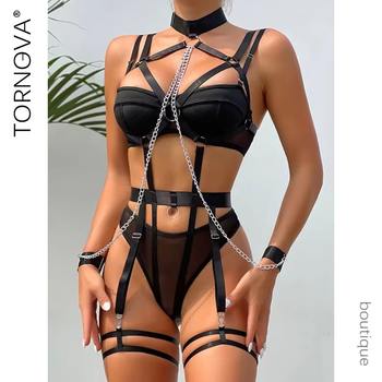 Tornova 4 Piece Set Chain Halter Sexy Underwear Set for Women Erotic Lingerie Temptation Sexy Role Play Chain Underwear Set New