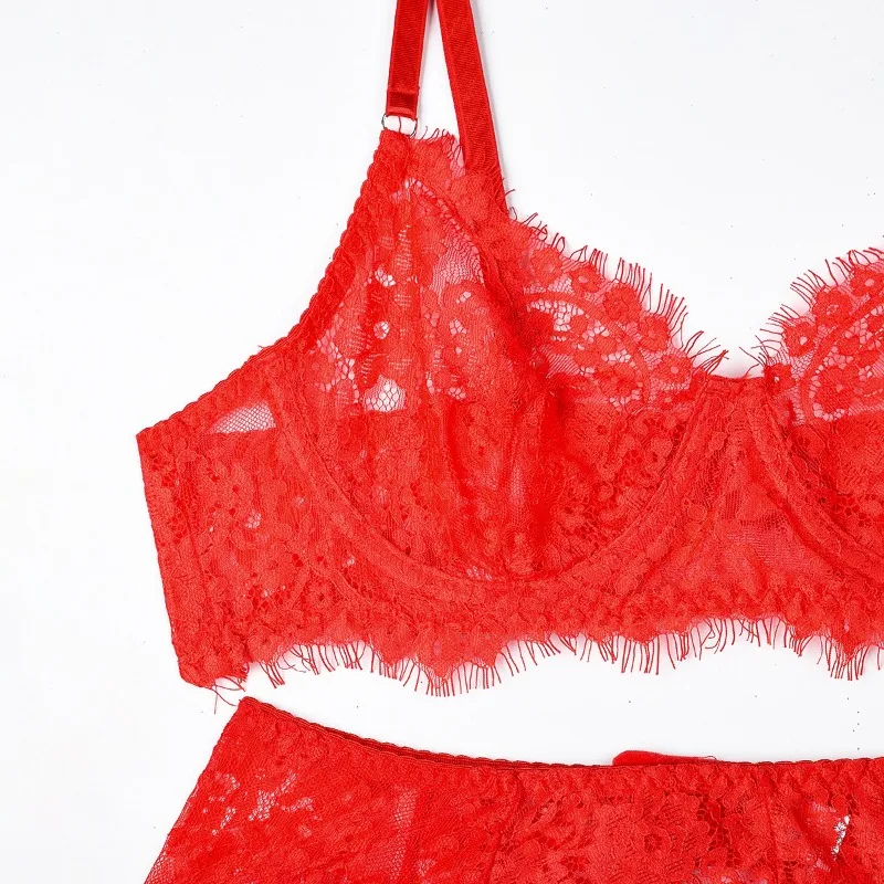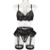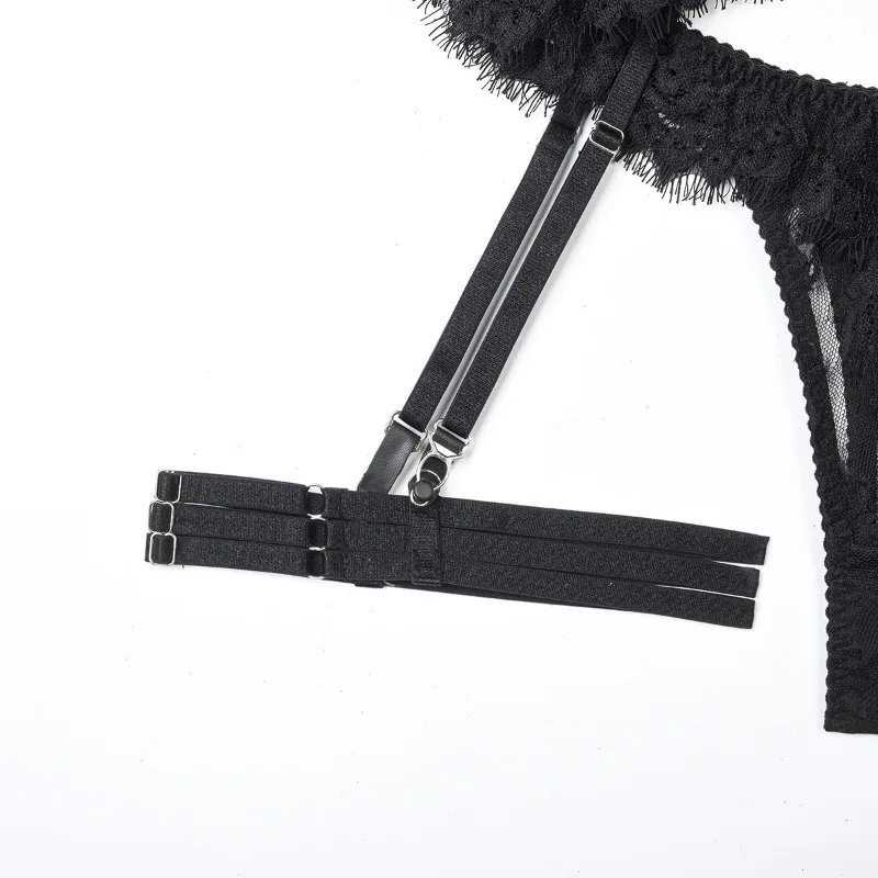 Toucheart 4 Piece Set Sexy Lace Underwear Set For Women Mesh See-Through Garters Solid Color Women’s Underwear Sexy Lingerie Set