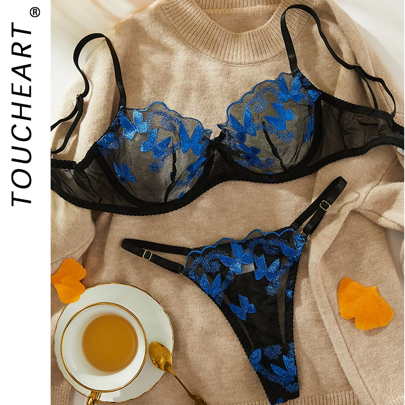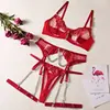 Toucheart 4-Piece Set Sexy Lingerie Metal Chain Embroidered Printing Perspective Sexy Hollow Out Lingerie Garter Kit Sexy Adult