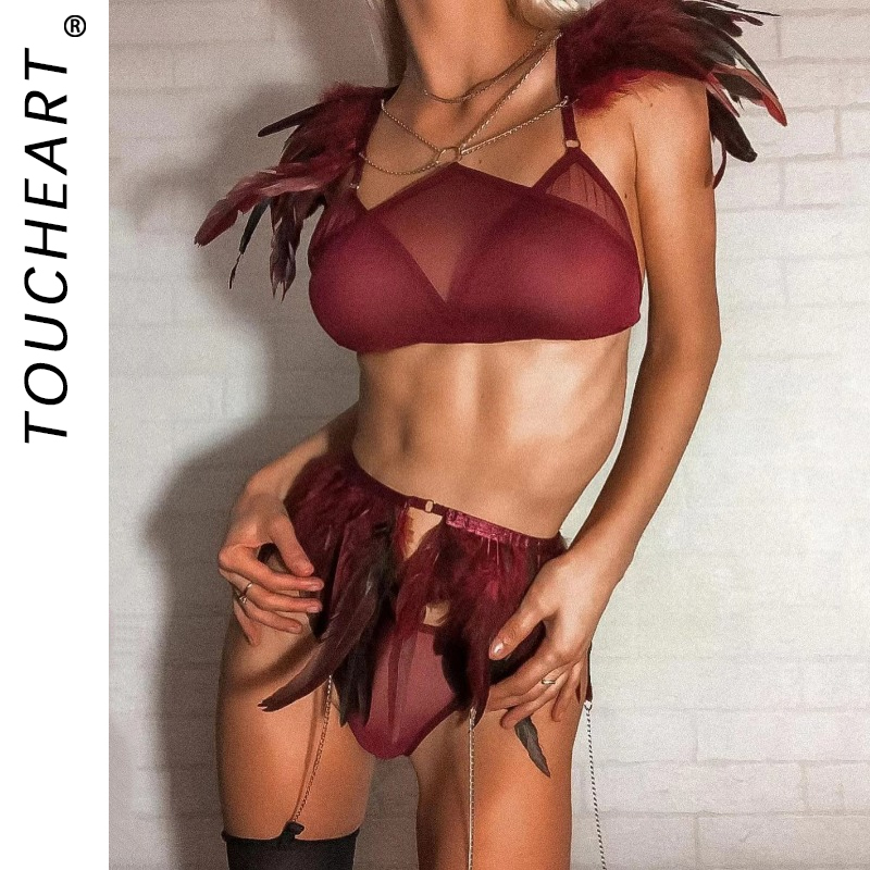 Toucheart 5-Piece Suit Sexy Underwear Suit Flocked Leopard Print Fashionable Hollow Sexy Lingerie Women Perspective Underwear