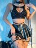 Toucheart Lace Sexy Black Bra Underwear Set For Women Solid Color Leather Solid Color Low Cut Hollow Out Sexy Apron Underwear