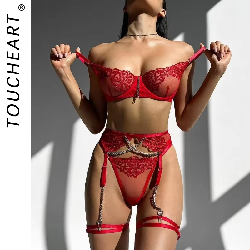 Toucheart Sexy Lingerie Suit for Women Bow Knot Patchwork Printing Underwear Sexy Bra Set Thin Cup Colorful Lingerie Suit New