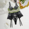 Toucheart Sexy Lingerie Suit for Women Contrast Color Splicing Sexy Bra Set Mesh Perspective Hollow Sexy Lingerie 3-piece Set