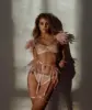 Toucheart Three-Point Fun Suit Lace Feather Exotic Sets Women Sexy Lingerie Garter Kit Chain Panty Perspective Underwear Set New