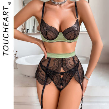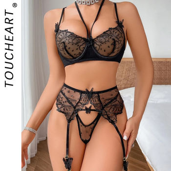 Toucheart Sexy Lingerie Suit for Women Steel Support Three-point Garter Contrast Embroidery Body Sexy Adult Sexy Female Lingerie