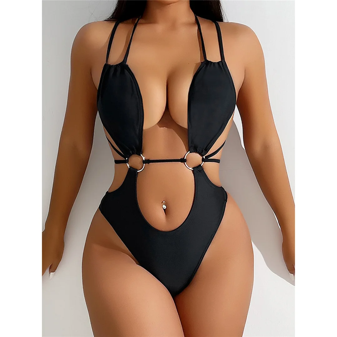 Tummy Cut Out Cross Back Monokini One Piece Swimsuit Women Swimwear Female Backless High Leg Cut Bather Bathing Suit Swim V5892