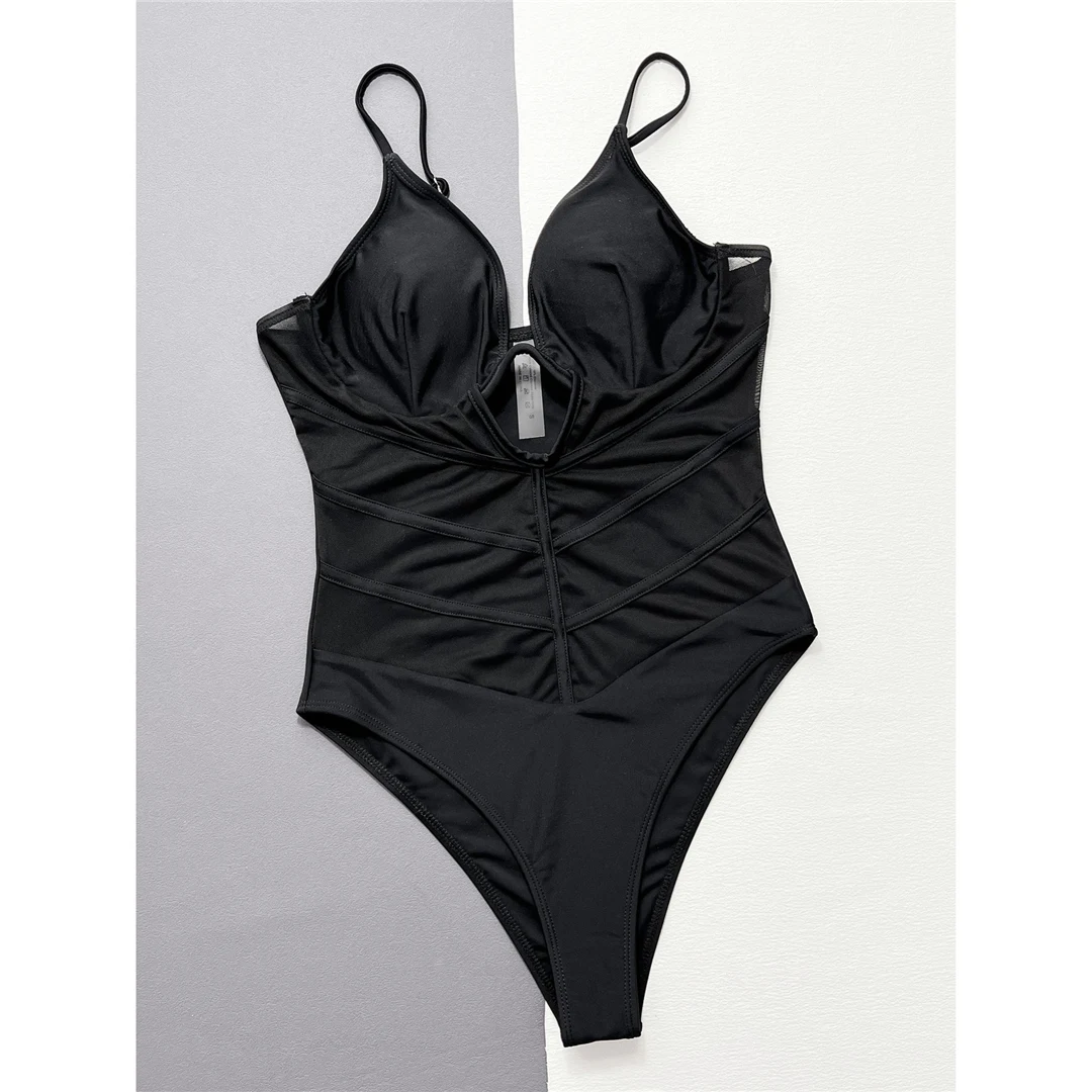 V Neck Mesh Sheer Underwired V-bar One Piece Swimsuit Women Swimwear Female See Through High Cut Bather Bathing Suit Swim V5413