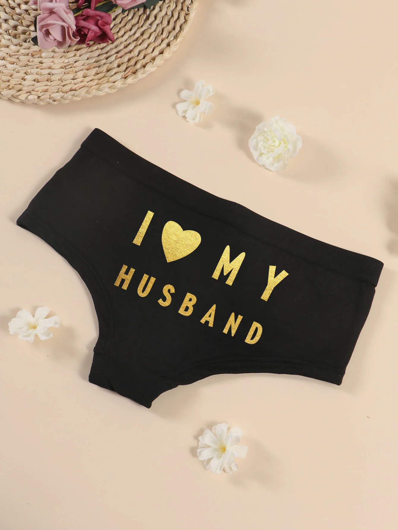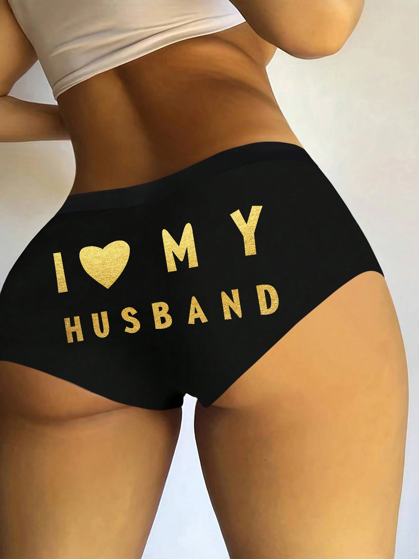 Varsbaby Cheeky Boyshort with I Love My Husband Prints Underpant Big Size Panties Women Playful Underwear Boxer Shorts