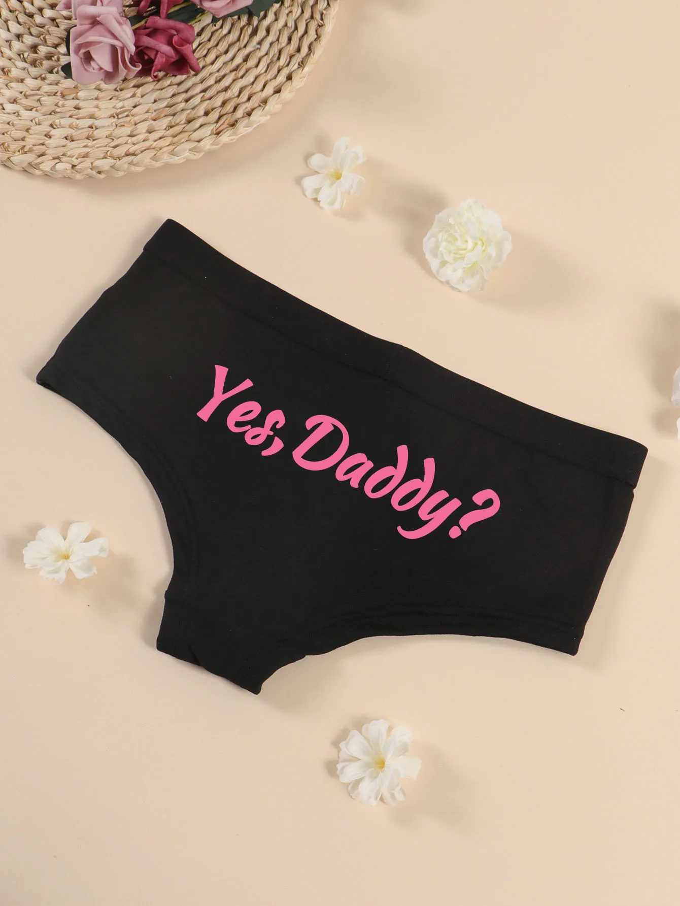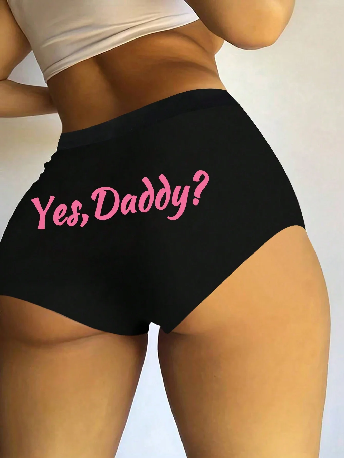 Varsbaby Cheeky Letter Prints Boyshort Underpant Big Size Panties Women Playful Underwear with Yes Daddy Prints Boxer Shorts