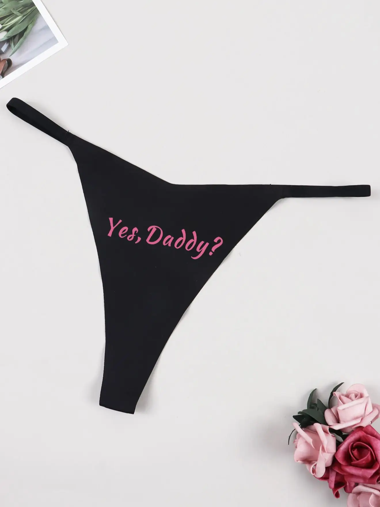 Varsbaby Funny Letter Printed T-Back Thong Women Low Waist G-string with Yes Daddy Prints Girl Lady Black Underpanties